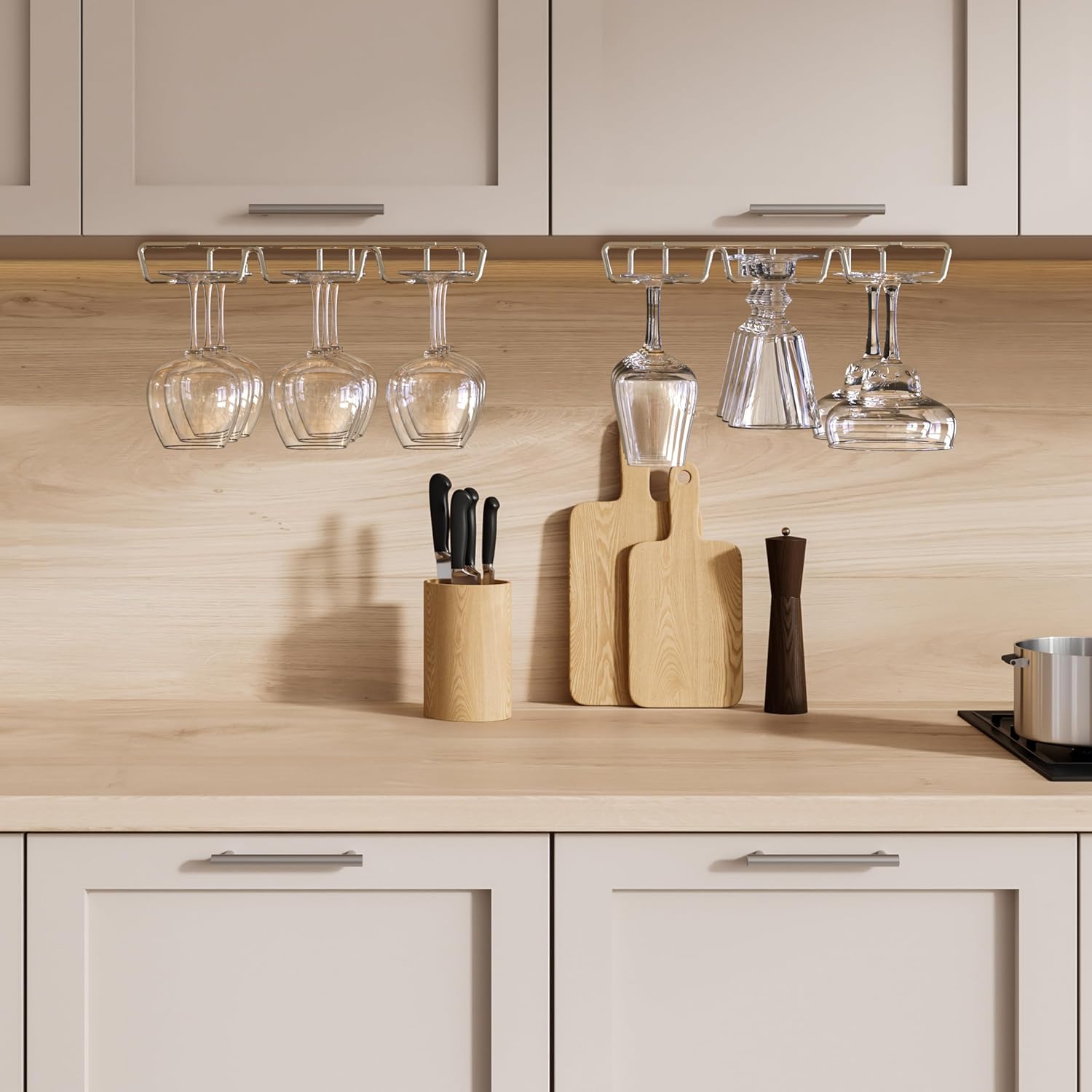 DecoBros Under Cabinet Wine Glass Stemware Rack Holder, Chrome