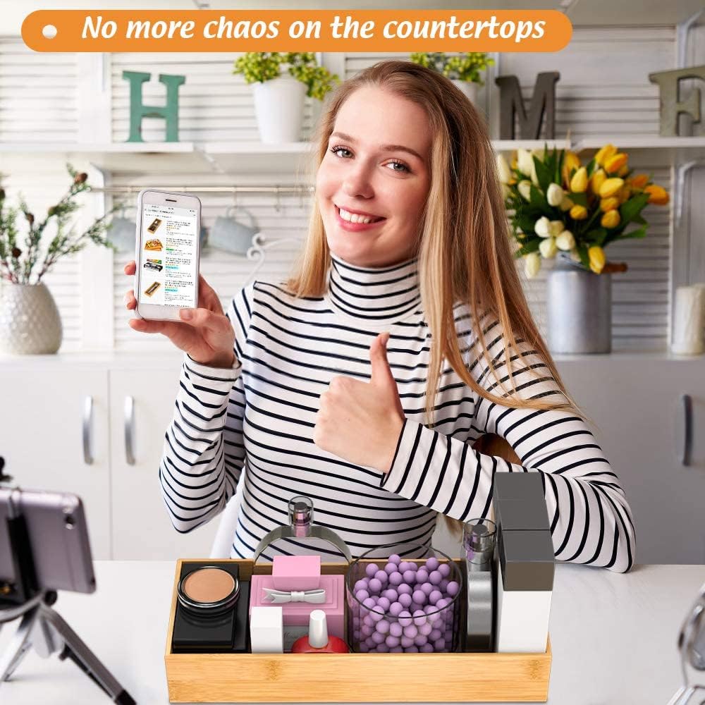 - 【Multi-functional Storage Box】 This deep bamboo organizer boxes are good for organizing items, such as forks, spoons, and knives in kitchen; brushes, soap dispenser and toilet paper in bathroom; cosmetics, makeup tools and hair accessories in makeup room; documents, pens and paper clips in office. Try this bamboo storage box organizer - ending clutter in your office desk and kitchen drawer.
