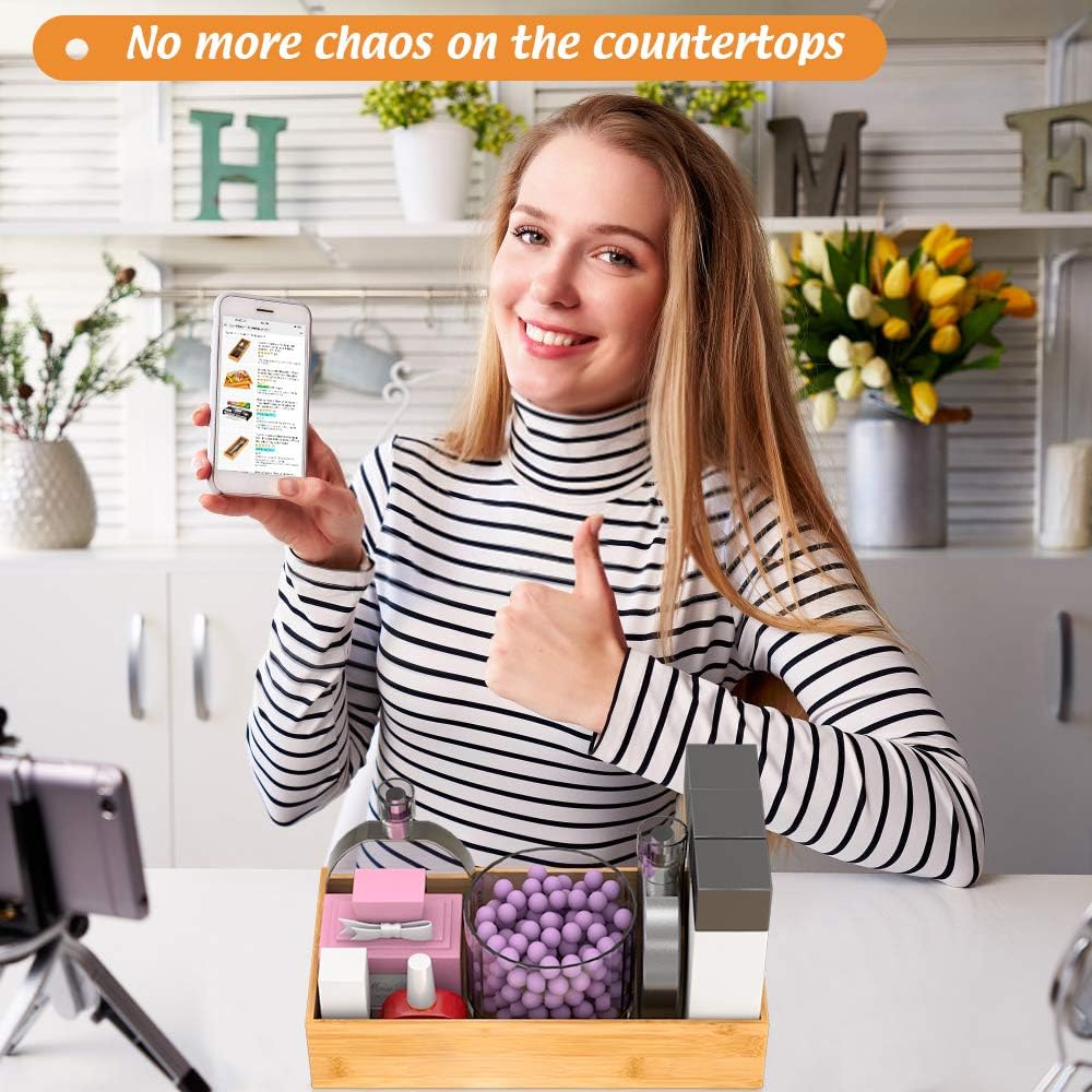 - 【Multi-functional Storage Box】 This deep bamboo organizer boxes are good for organizing items, such as forks, spoons, and knives in kitchen; brushes, soap dispenser and toilet paper in bathroom; cosmetics, makeup tools and hair accessories in makeup room; documents, pens and paper clips in office. Try this bamboo storage box organizer - ending clutter in your office desk and kitchen drawer.