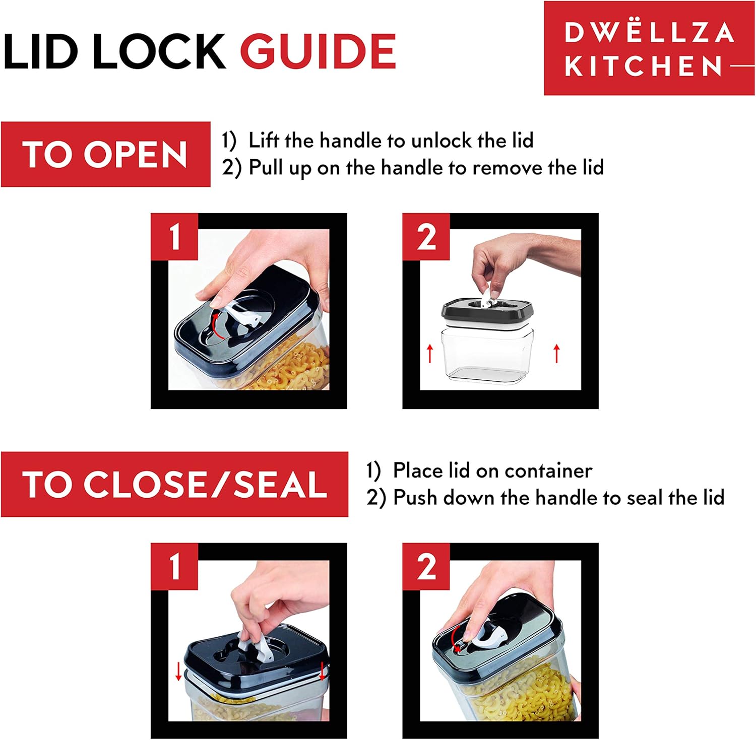 - Enjoy Your Meal With Fresh Food: Keep your foods fresh with our very easy to use airtight lid-lock seal mechanism. No dealing with flimsy pumps. Our food containers create an airtight seal by simply pushing down the ring on the lid. Lift the ring and push up whenever you want to open the containers. The airtight seal is so secure you can store liquids without ever worrying about leaks!