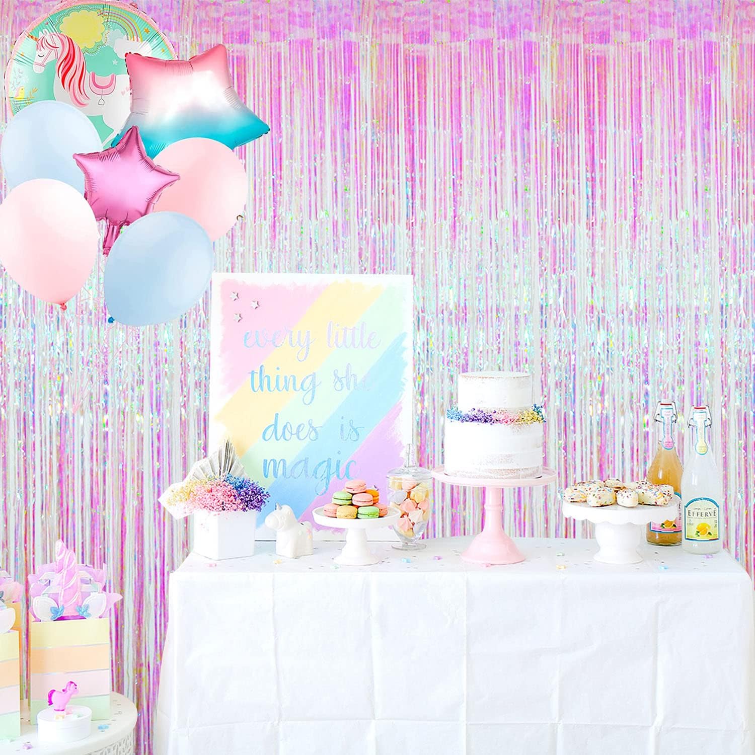GOER 6.4 ft x 9.8 ft Metallic Tinsel Foil Fringe Curtains,Pack of 2 Party Streamer Backdrop for Unicorn Birthday,Graduation Decorations and New Year Eve (Iridescent)