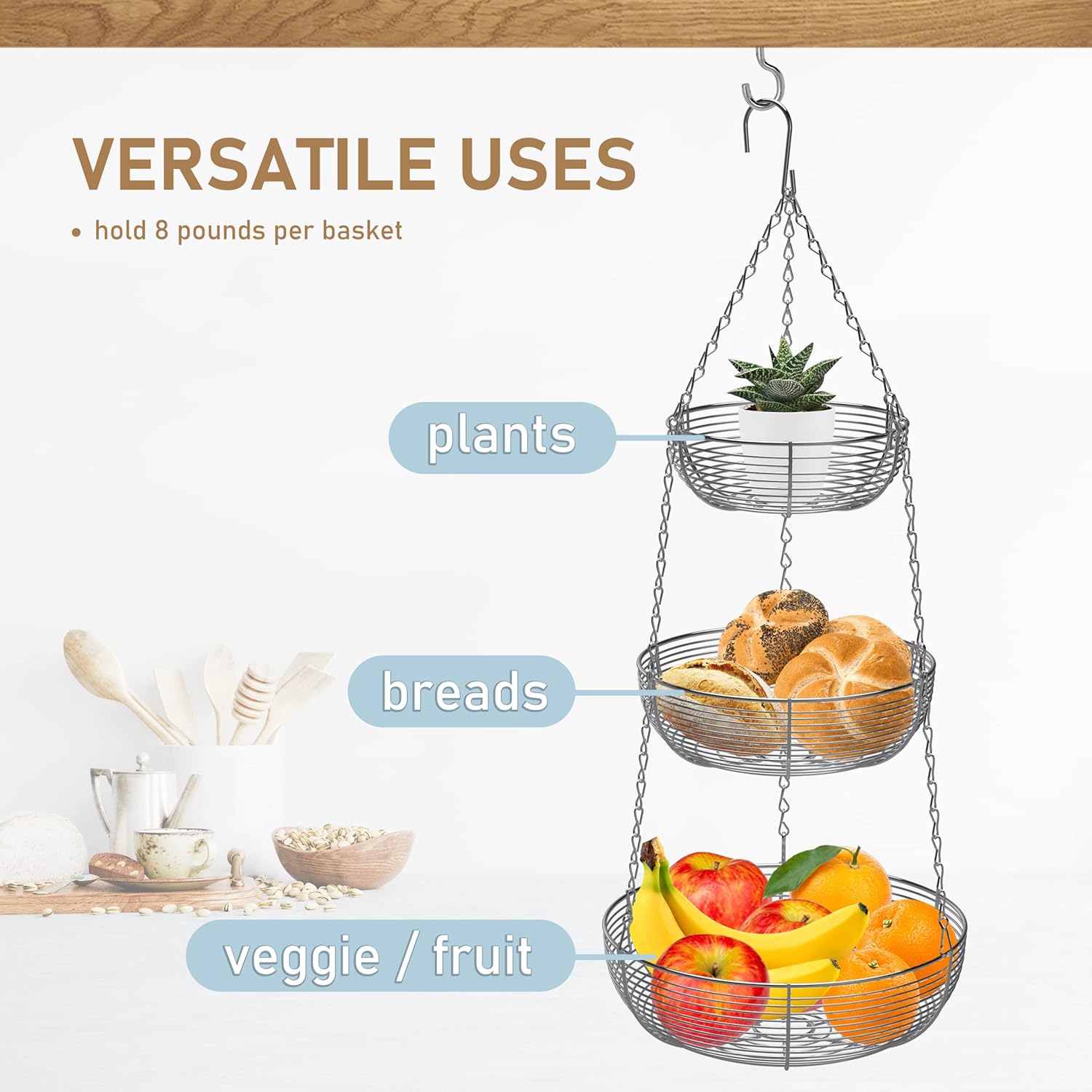 - Kitchen Organization - Display and organizer fruits in our heavy duty wire hanging fruit baskets to clearly see each fruit