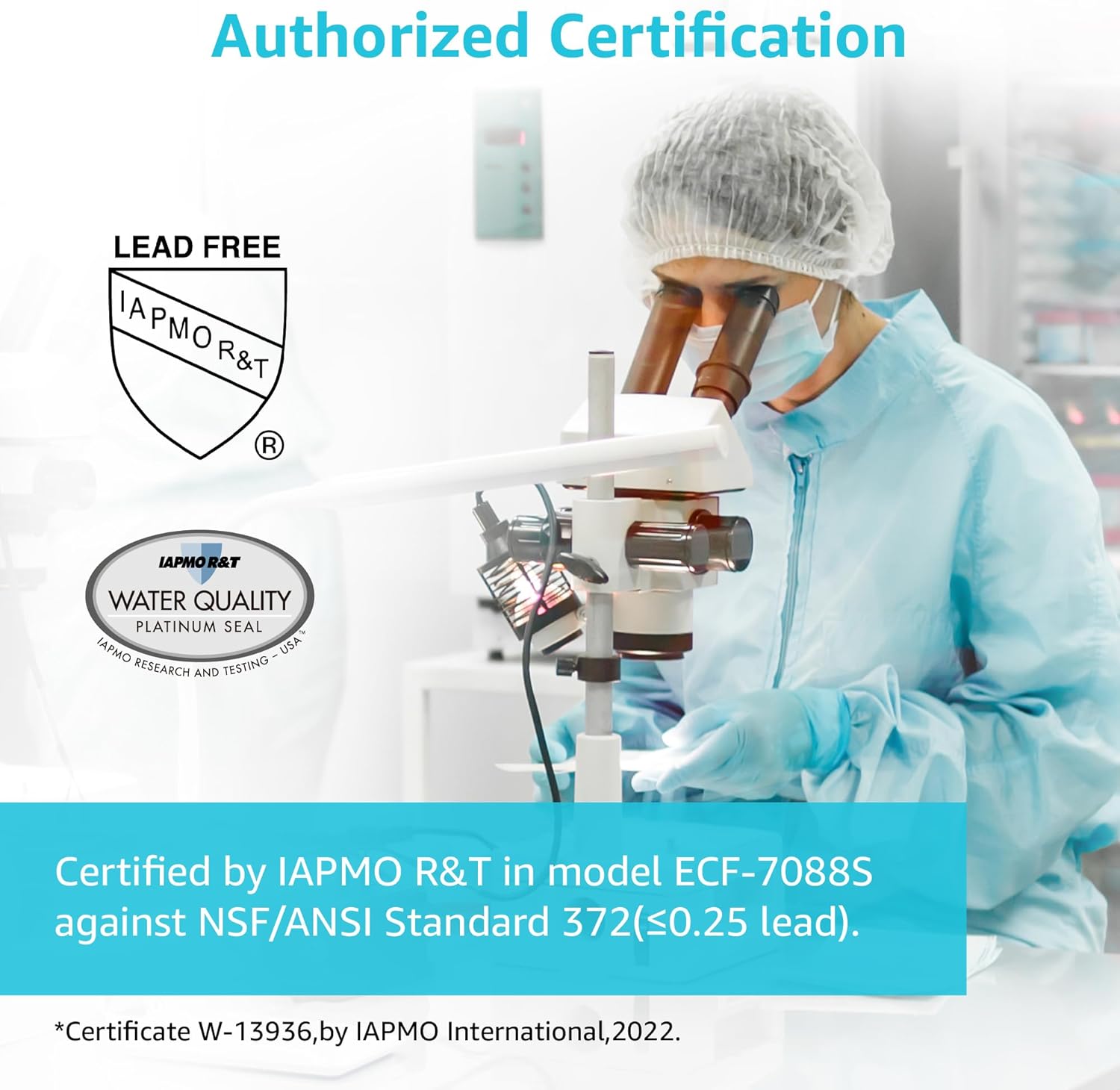 - External Testing Certification : NSF/ANSI 42&372 Certification