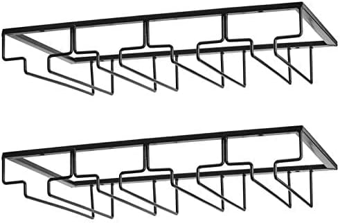 - 🍷SUITABLE FOR MULTIPLE GLASS TYPES - Depending on the size of the glass, each rack can hold up to 9 to 12 wine glasses with ease, suitable for a variety of glass types like Bordeaux/Burgundy glasses, Champagne glasses, cocktail glasses, etc. This wine glass rack also fits under most kitchen cabinets.
