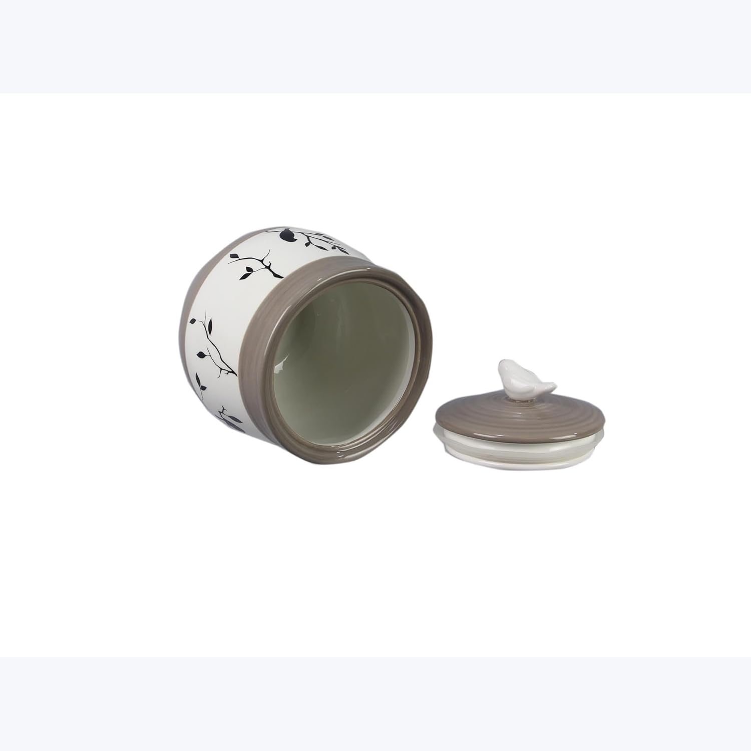 Young's Inc. 4 Pcs Set Botanical Ceramic Canisters- Storage Container for Kitchen and Bathroom - Beautiful Home Decor Accent to Store Food, Coffee, Tea, and More - Brown, White