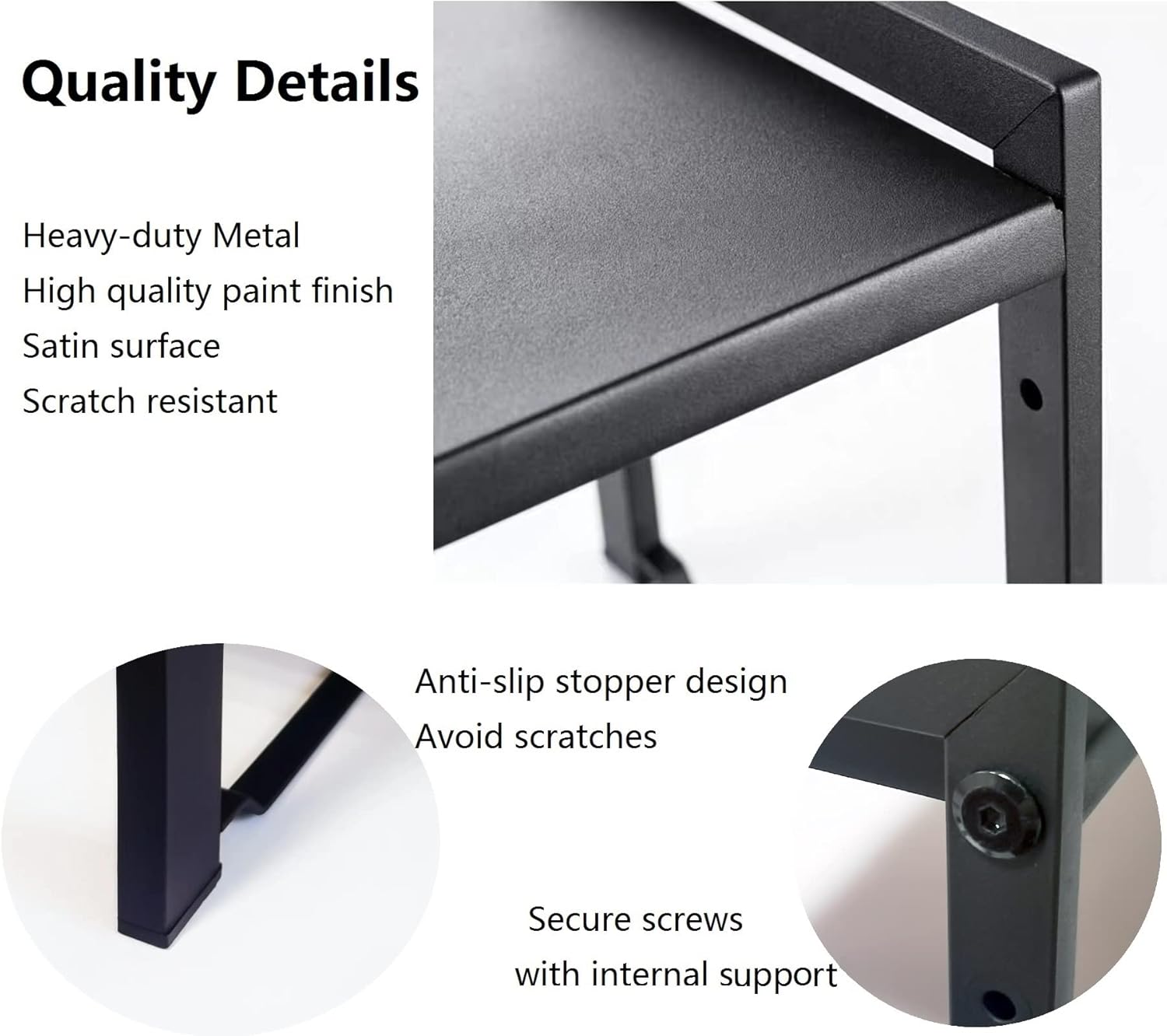 - Durable Construction: Built with sturdy metal construction and a heavy-duty design, this counter shelf can hold up to 22 lbs, making it ideal for storing a variety of items, from kitchen supplies to books and office essentials. The elegant matte black powder-coated finish adds a touch of style while protecting against corrosion