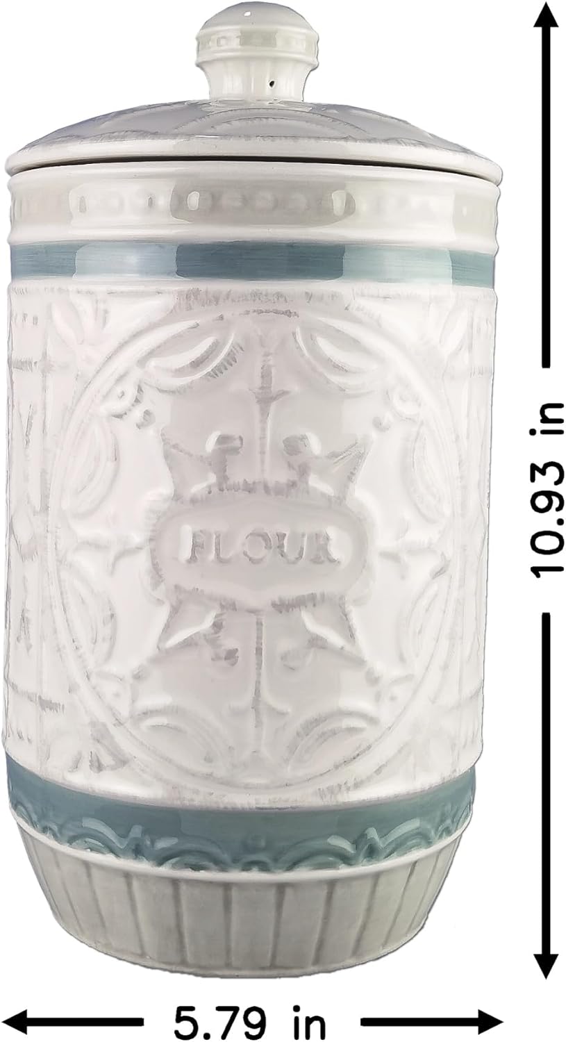 Young's Inc. 4 Pcs Set Casual Provincial Ceramic Canisters- Storage Container for Kitchen and Bathroom - Beautiful Home Decor Accent to Store Food, Coffee, Tea, and More - Green, White