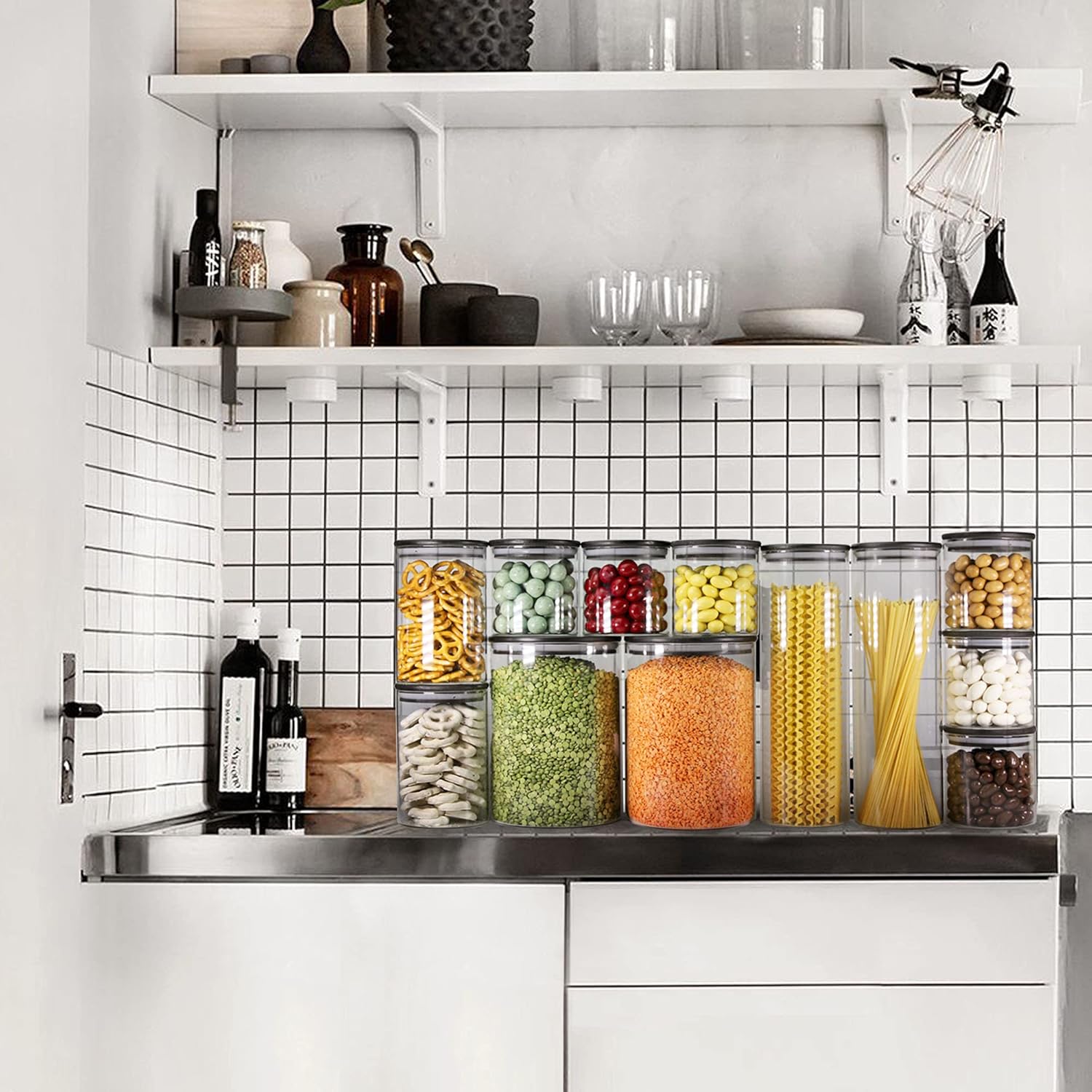 - ✅ 2021 NEW STYLISH BLACK LID: Looking for black and white, cool and stylish home deco? These Urban Green glass food storage canister sets with black lids are perfect for contemporary pantry design. We carefully selected 5 different sizes from 6oz to 100oz that can store any dry food, such as pasta, beans, nuts, cookies, spice or flour. Try our black lids glass jars for a new modern pantry organization.