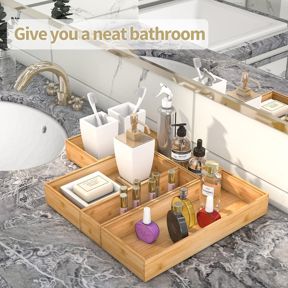 - 【Perfect Sizes & Stackable Design】Stackable drawer dividers fits anywhere to fit your specific needs with its different sizes. Our wood utensil organizer suitable for small or large kitchen utensils, silverware, cutlery and flatware. As bathroom drawer organizers can be stacked to save more you space, especially when organizing desk, bathroom countertop to keep perfume, candle, jewelry, trinket, watch etc.