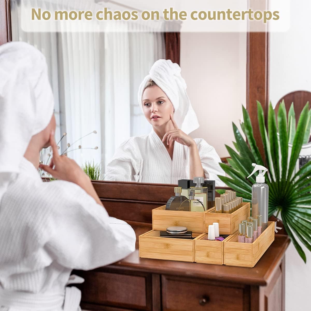 - 【Perfect Sizes & Stackable Design】Stackable drawer dividers fits anywhere to fit your specific needs with its different sizes. Our wood utensil organizer suitable for small or large kitchen utensils, silverware, cutlery and flatware. As bathroom drawer organizers can be stacked to save more you space, especially when organizing desk, bathroom countertop to keep perfume, candle, jewelry, trinket, watch etc.