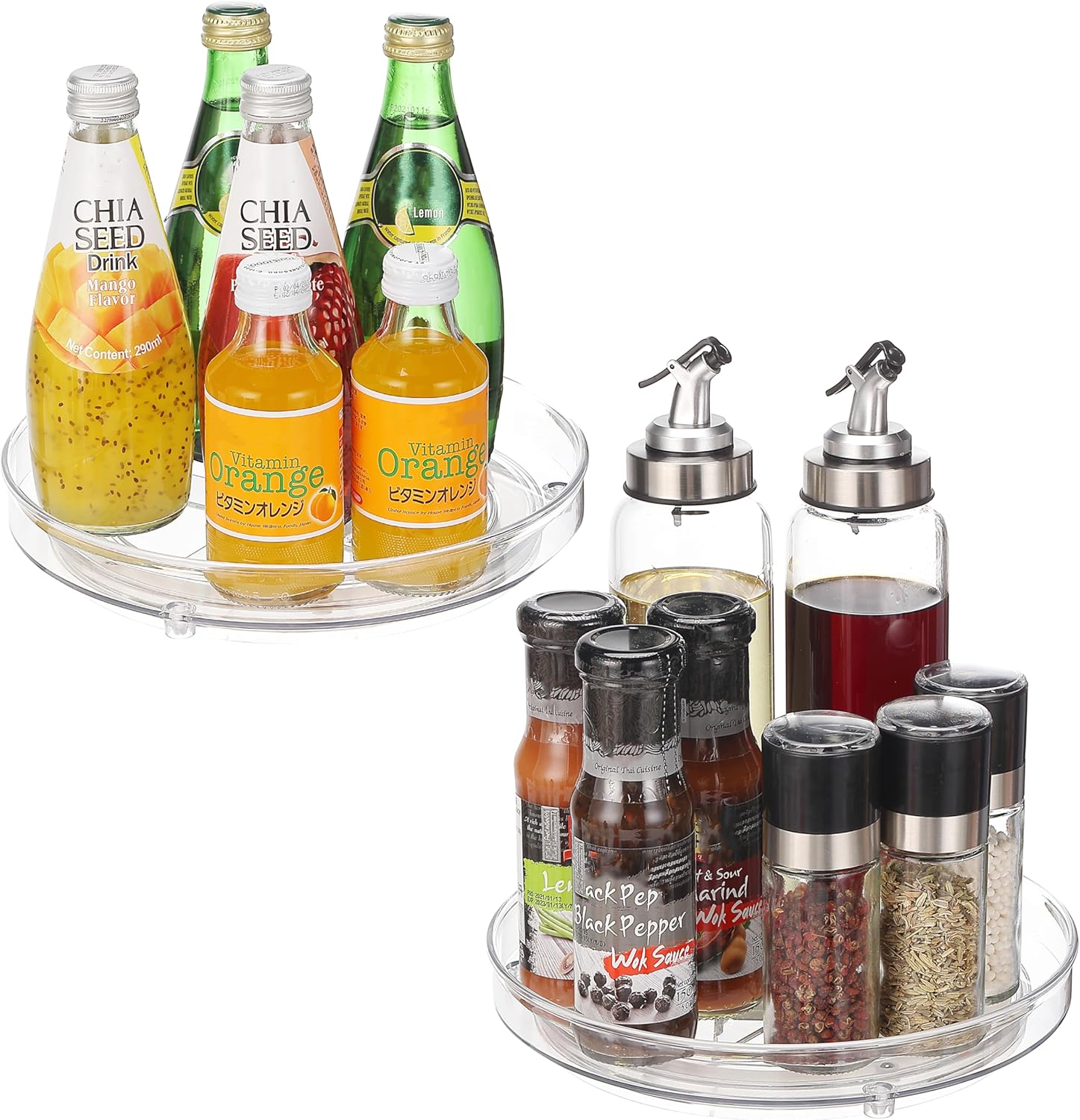 URALFA 9 Inch Lazy Susan Spice Rack Organizer, 360 Degree Rotating Round Lazy Susan Turntable for Cabinet, 2-Pack, Clear