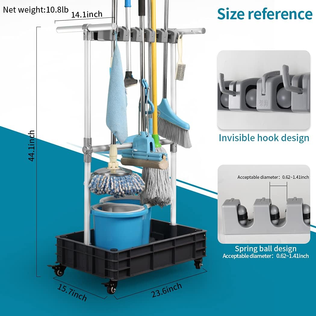 - 1、A nice little cart that holds your cleaning supplies,Keeps brooms and mops organized
