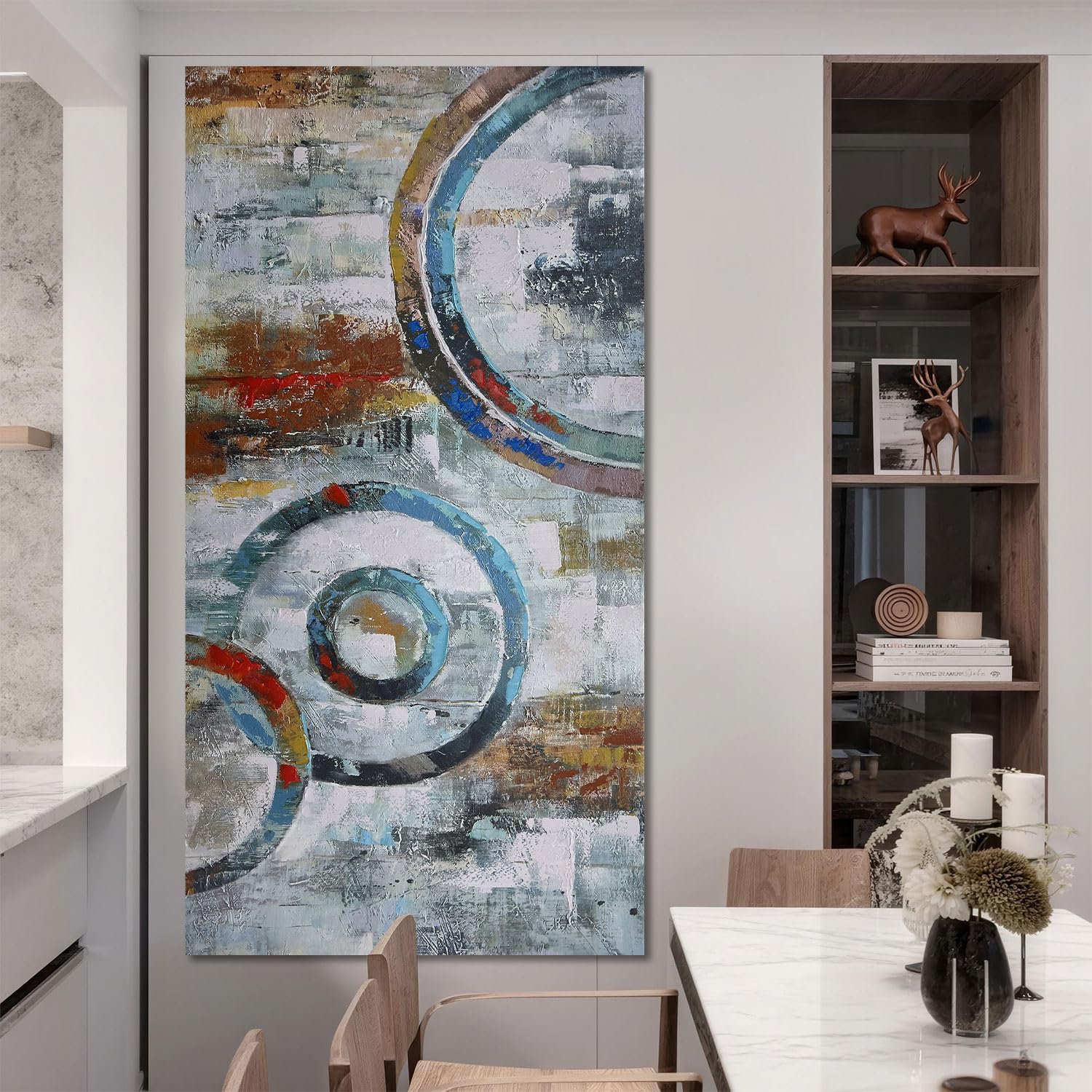 - This elegant painting features a vibrant array of colors to bring a touch of sophistication, which not only adds visual interest but also a tactile experience to your living and working space