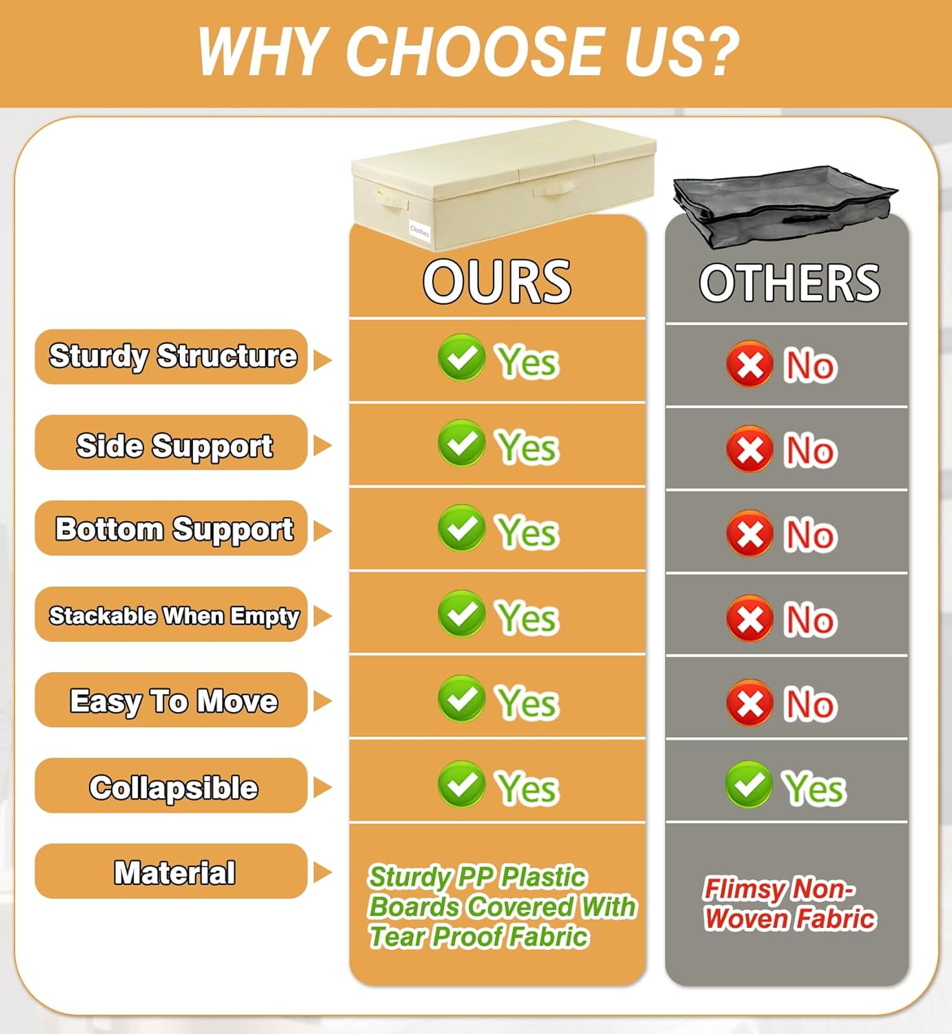 - STURDY STRUCTURE & STURDY HANDLES: 3 Reinforced sewn-in handles make it easy maneuverability and convenient for you to carry and pull out from under the bed; handy bins make excellent blanket organizers and storage; Lasts longer than underbed storage containers plastic; Keep your bedroom neat and tidy with storage bins with lids that fit your room's existing decor and theme