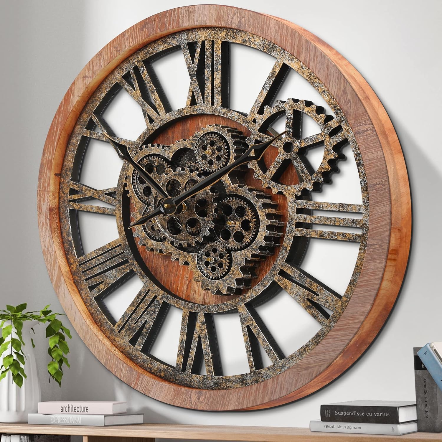 HOIBAI Large Wall Clock, Wall Clocks for Living Room Decor 20 Inch Farmhouse Vintage Rustic Kitchen Wall Decor Vintage Roman Oversized Wall Clock for Home Bedroom House, Moving Gears Clock