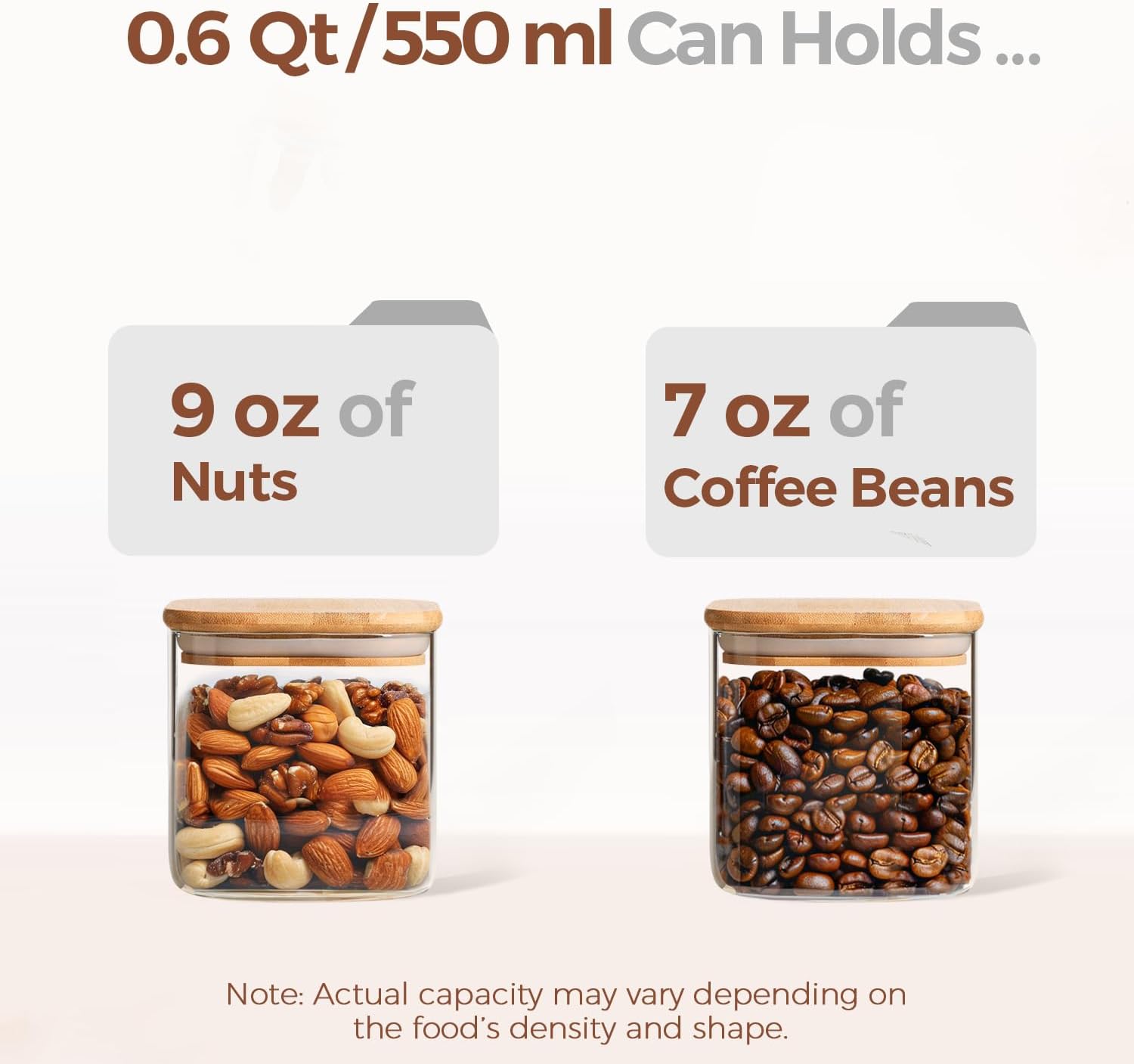 - Size For Subpackage: The 20oz jars are good to store family size food for maximum freshness and convenience in cabinet and pantry; Note: The small jars is safe in dishwasher while the wood lid is hand washing only! The lid only clean with a damp cloth