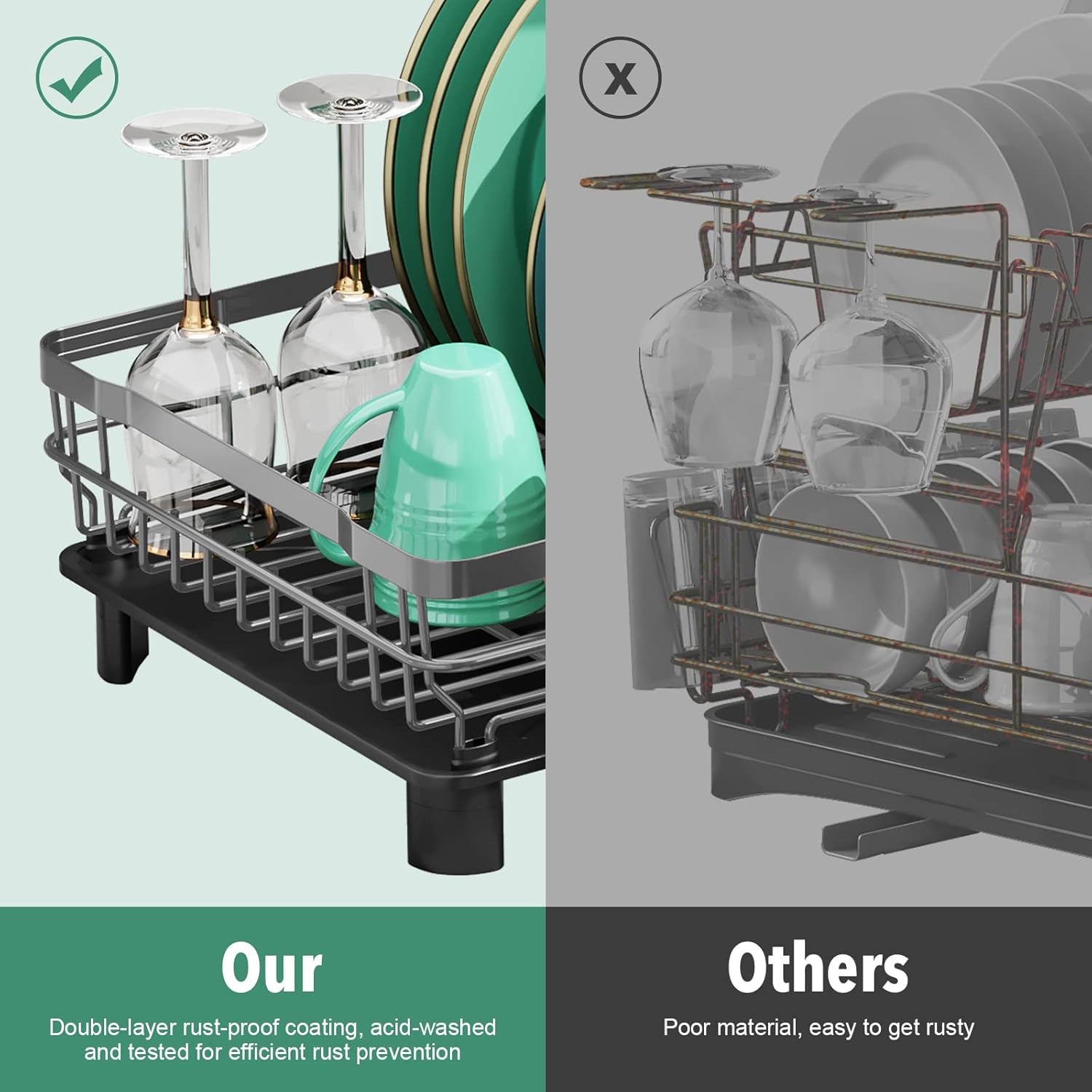 - 𝐒𝐓𝐔𝐑𝐃𝐘 𝐂𝐎𝐍𝐒𝐓𝐑𝐔𝐂𝐓𝐈𝐎𝐍:This drying rack for kitchen counter is made of high-quality metal stainless steel covered with a rust-resistant coating to protect the dish racks from rust.The sturdy frame also provides better protection for your dishes