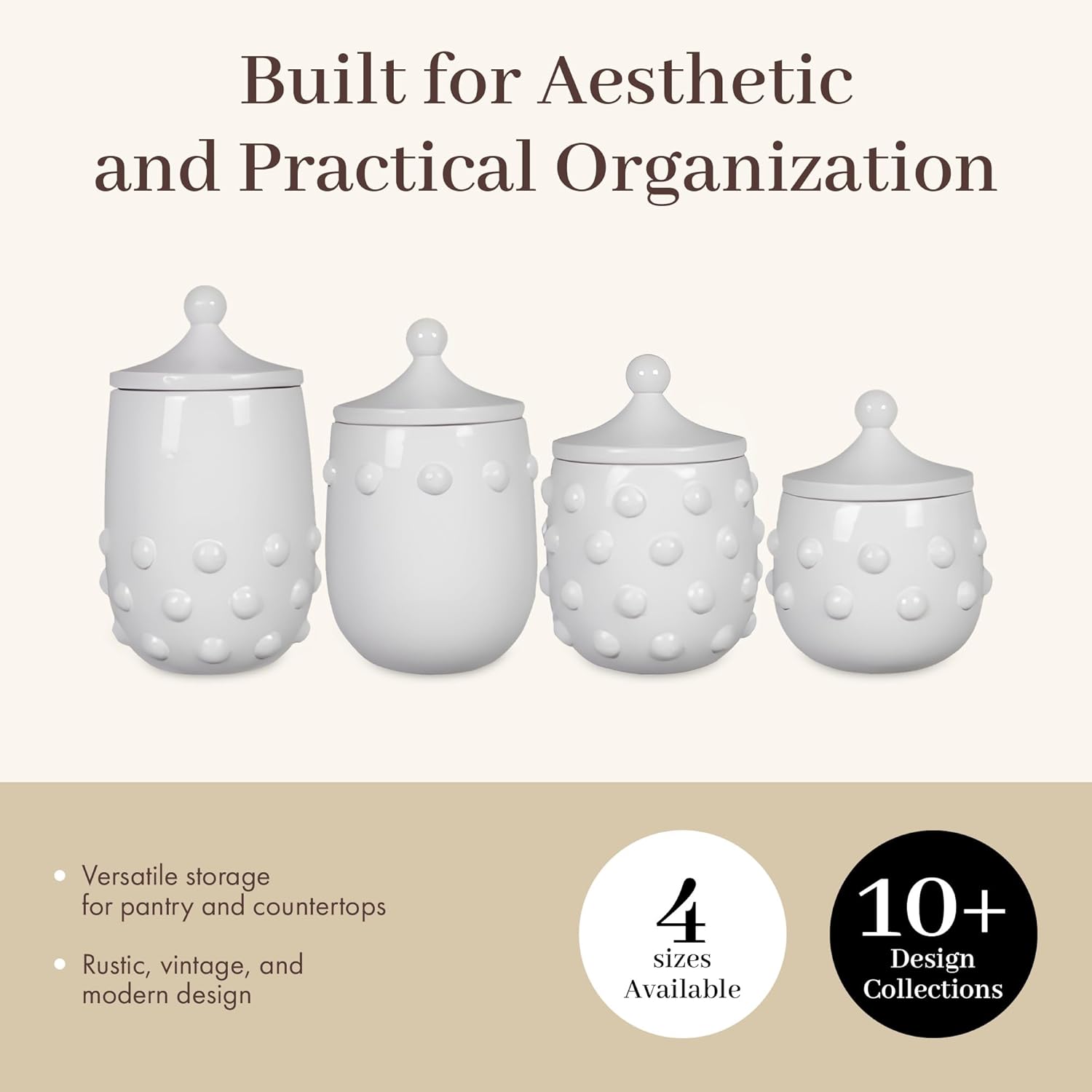 Young's Inc. 4 Pcs Set Modern-Cool Accent Ceramic Canisters- Storage Container for Kitchen and Bathroom - Beautiful Home Decor Accent to Store Food, Coffee, Tea, and More - White