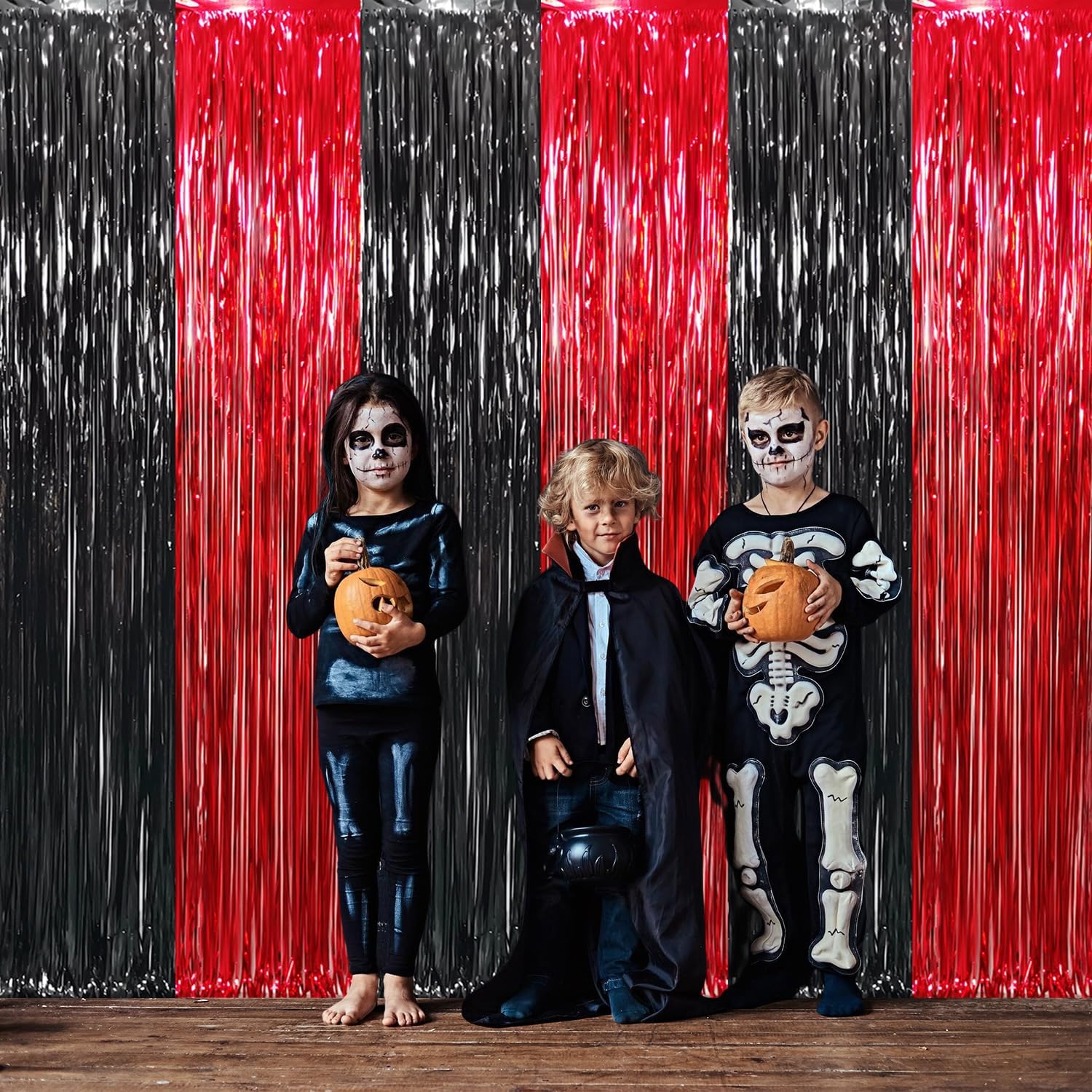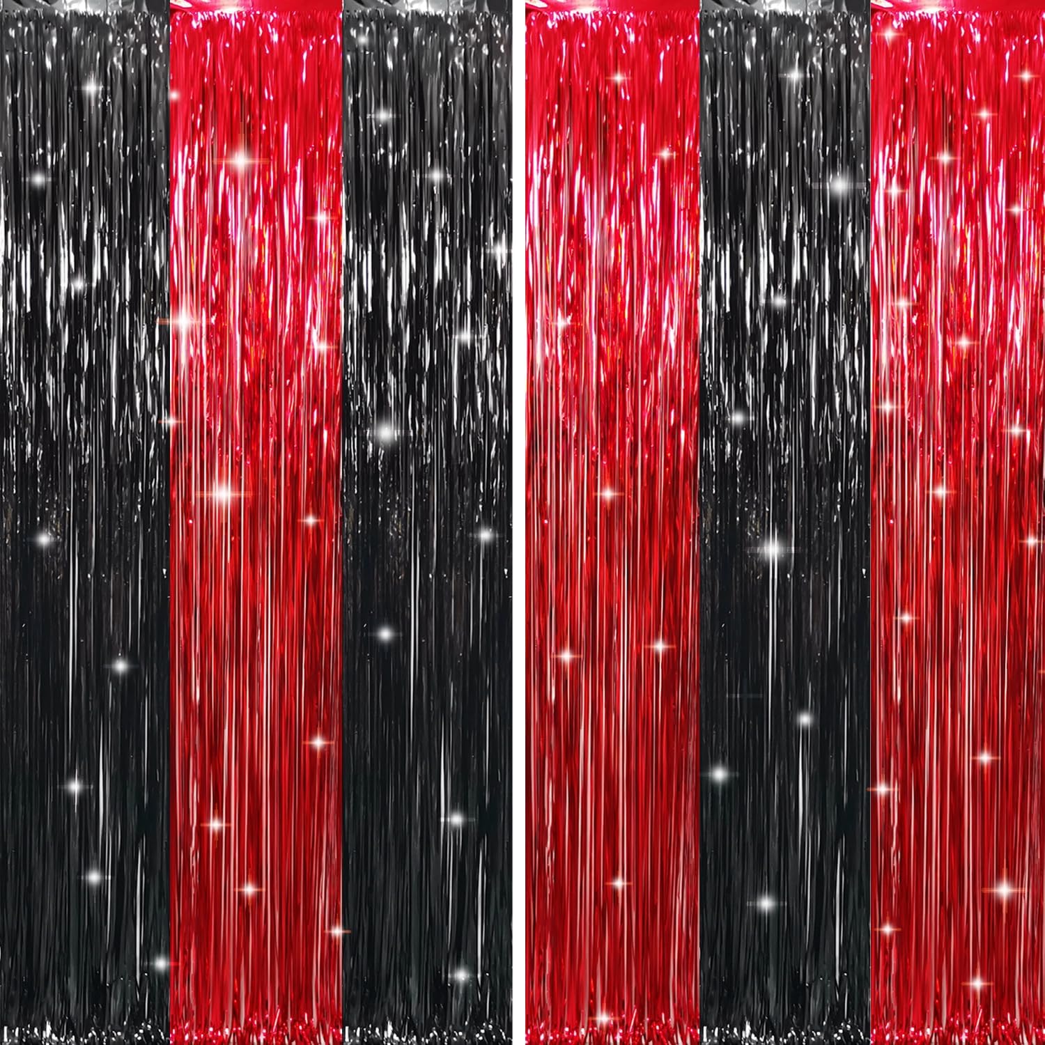 - Package Includes:2 pack Black&Red foil fringe curtains,3.2 ft x 8.2 ft each,suitable for hanging on a door or coverage a wall fully