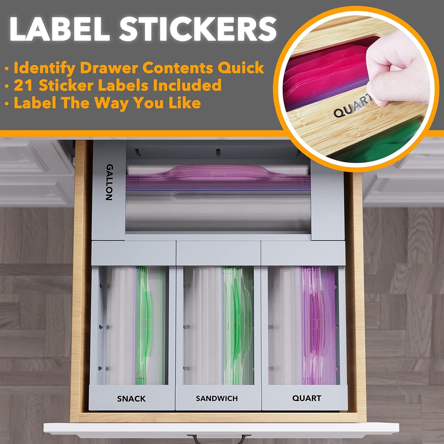- Food Storage Bag Holder: Make your drawer neat and organized with this bamboo box; The bag organizer is designed specifically for your food storage bags organization