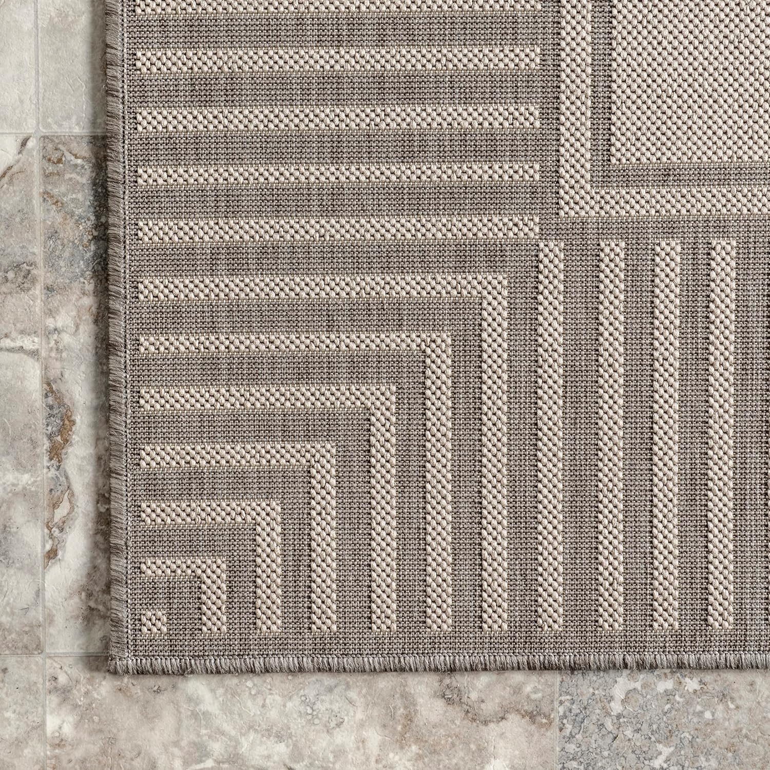 nuLOOM 4' x 6' Outdoor Area Rug, Casual Design with Striped Border, Stain Resistant, Highly Durable, for Patio, Balcony, Bedroom, Living Room, Dining Room, Bathroom, Light Grey