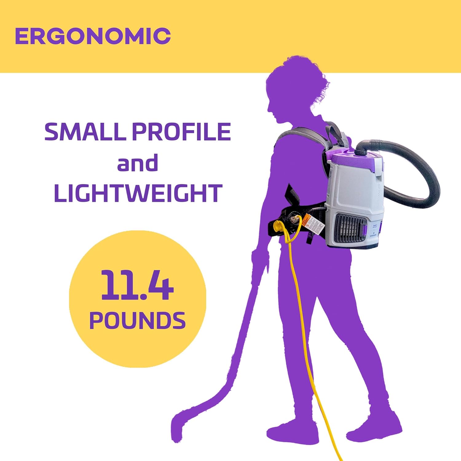 - REDUCED PROFILE — Maximize your comfort and productivity with the backpack vacuum cleaner's new, lower triangular shape that responds effortlessly to the user's motion.