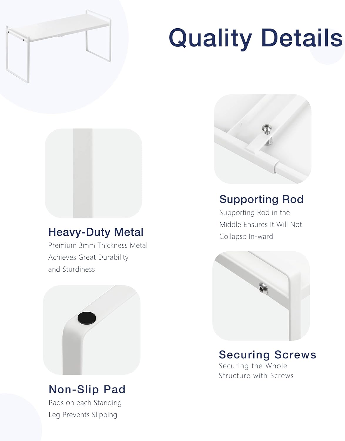 Nxconsu Expandable Cabinet Shelf Organizer Riser for Kitchen Pantry Cupboard Under Sink Countertop Home Storage Organization Rack Space Saver Freestanding Heavy Duty Nonslip Stackable White