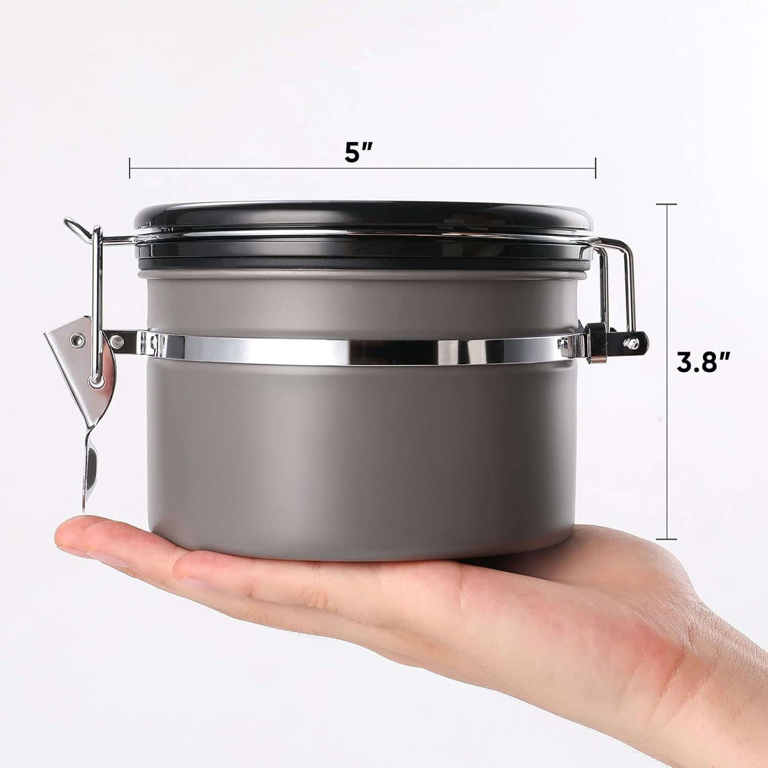 - LONG-LASTING FRESHNESS: Sealed vacuum coffee Canister 22 Ounces is made of high-quality food grade stainless steel 304 with a strong stainless steel buckle.It keeps quality coffee beans or ground coffee fresh for a long time, allowing you to enjoy every bite of coffee you like best.