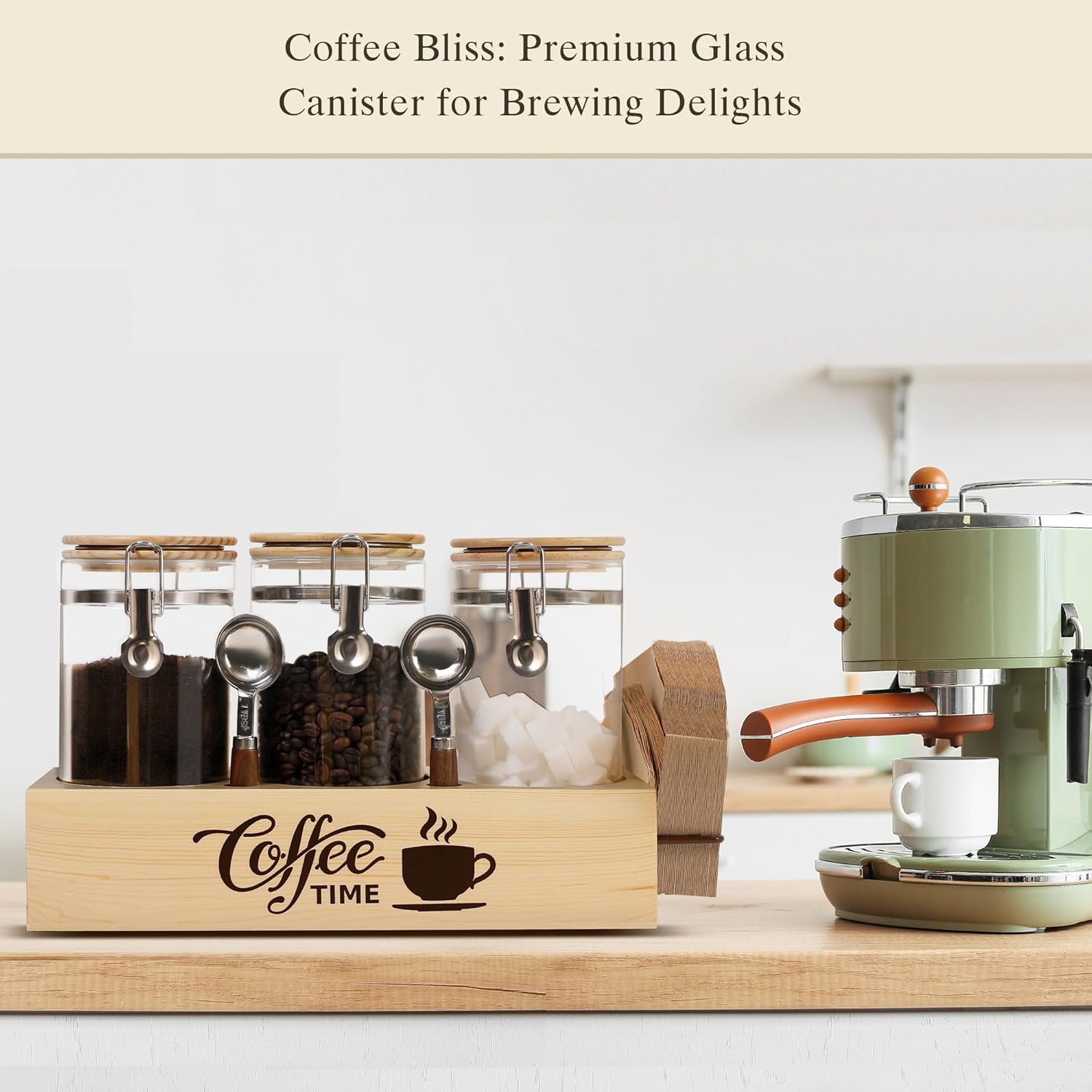 - 🌟【Deluxe Borosilicate Glass Canisters】: Our coffee canister set includes three durable, heat-resistant, and shatterproof glass canisters, ideal for safe, reliable, and aesthetic storage of coffee beans, tea leaves, sugar, nuts, and more kitchen staples.