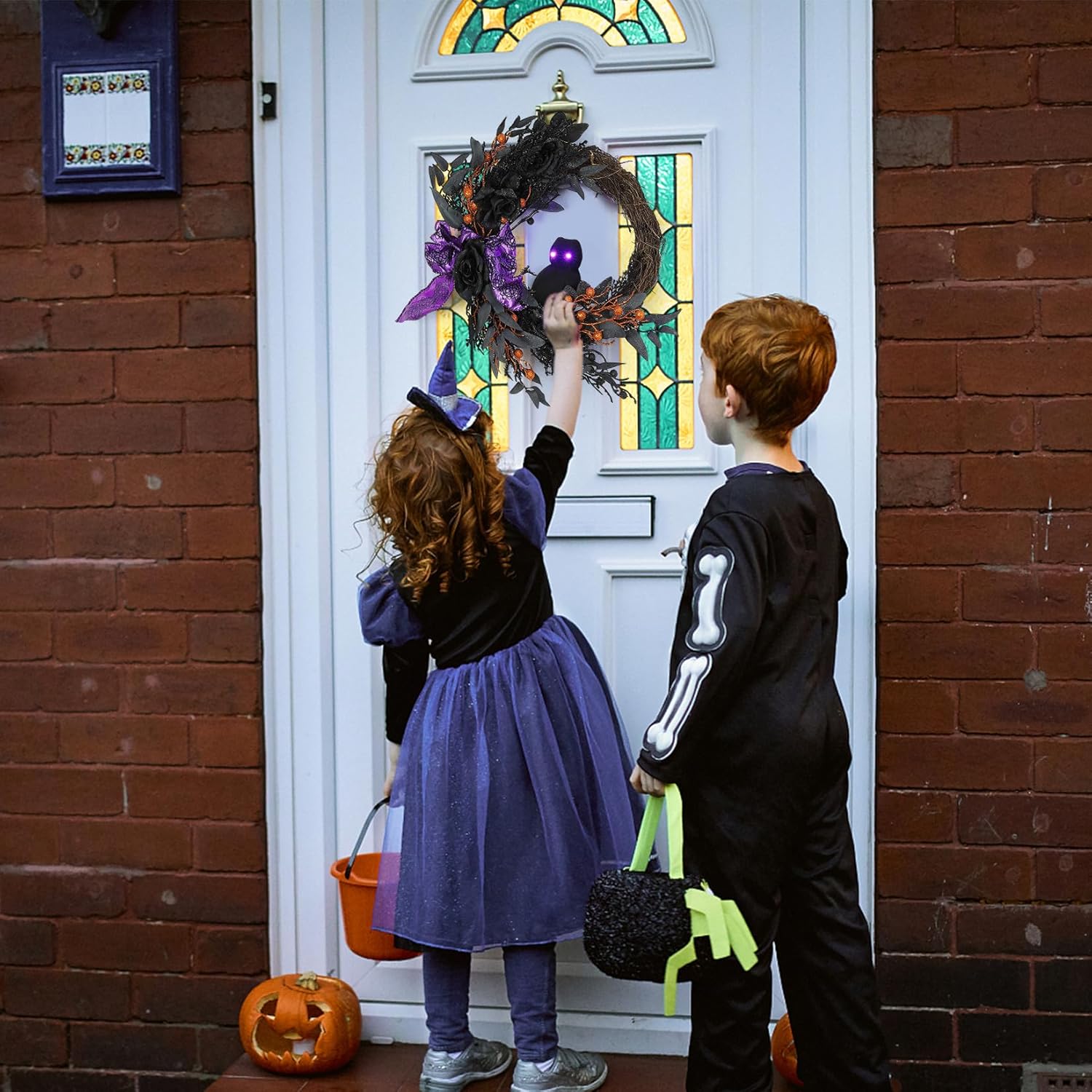 - Perfect Halloween Decorations: This wreath adopts a black orange and purple color scheme, which can easily pair with other Halloween decorations. It is perfect for hanging on the front door, porch, wall, mantel, fireplace, or anywhere you want.