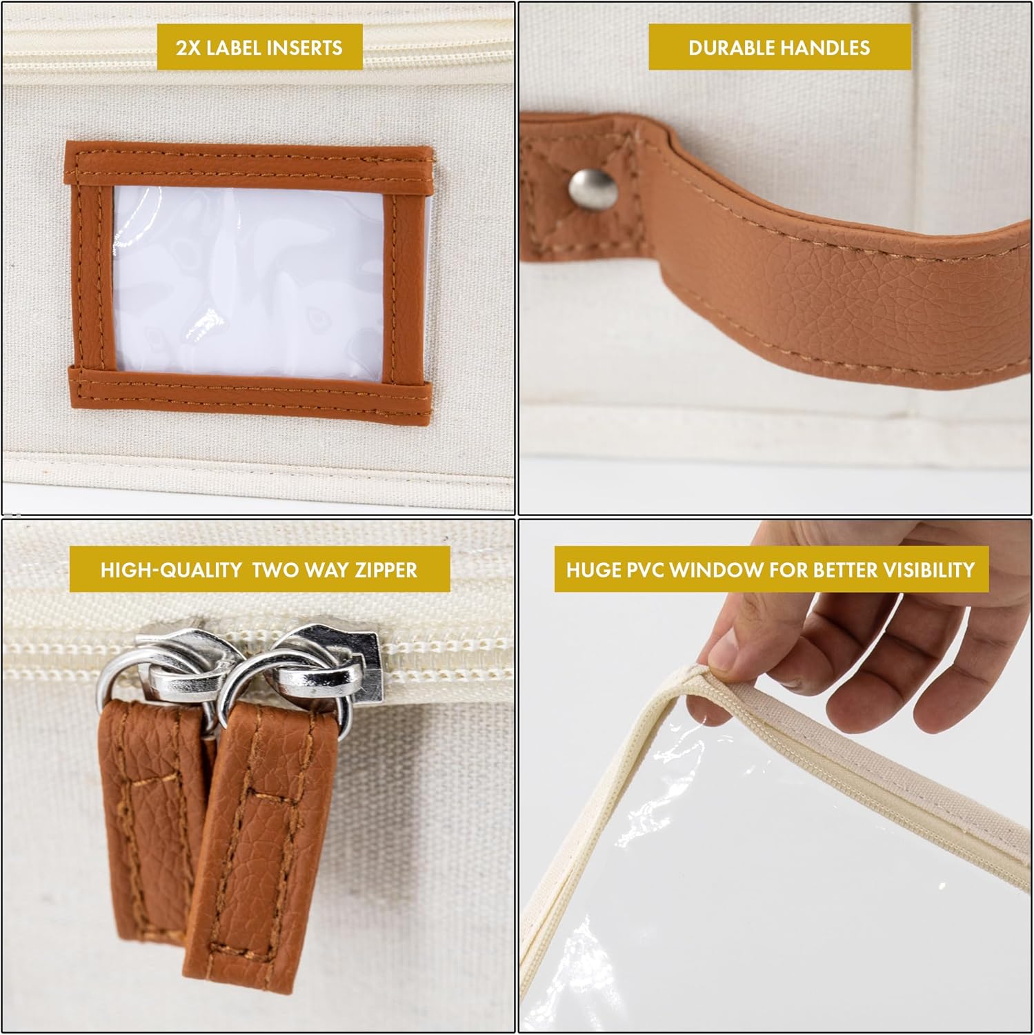 - ๐๐จ๐ฎ๐๐ฅ๐ ๐๐๐๐ฎ๐ซ๐ ๐๐๐ง๐๐ฅ๐๐ฌ ๐๐ข๐ญ๐ก ๐๐๐๐ฏ๐ฒ ๐๐ฎ๐ญ๐ฒ ๐๐ข๐ฉ๐ฉ๐๐ซ ๐๐ฅ๐จ๐ฌ๐ฎ๐ซ๐: Our storage boxes with lids for organizing comes with 3 fortified handles for secure lifting & powerful zipper for durable sealing. The handles of these low profile underbed storage are precisely stitched inside out, with additional rivets to hold up to 35 lbs for heavy-duty use making it ideal to use as flat clothing storage. To enhance safety, our under bed flat storage boxes are expertly tailored to keep your clothes protected.