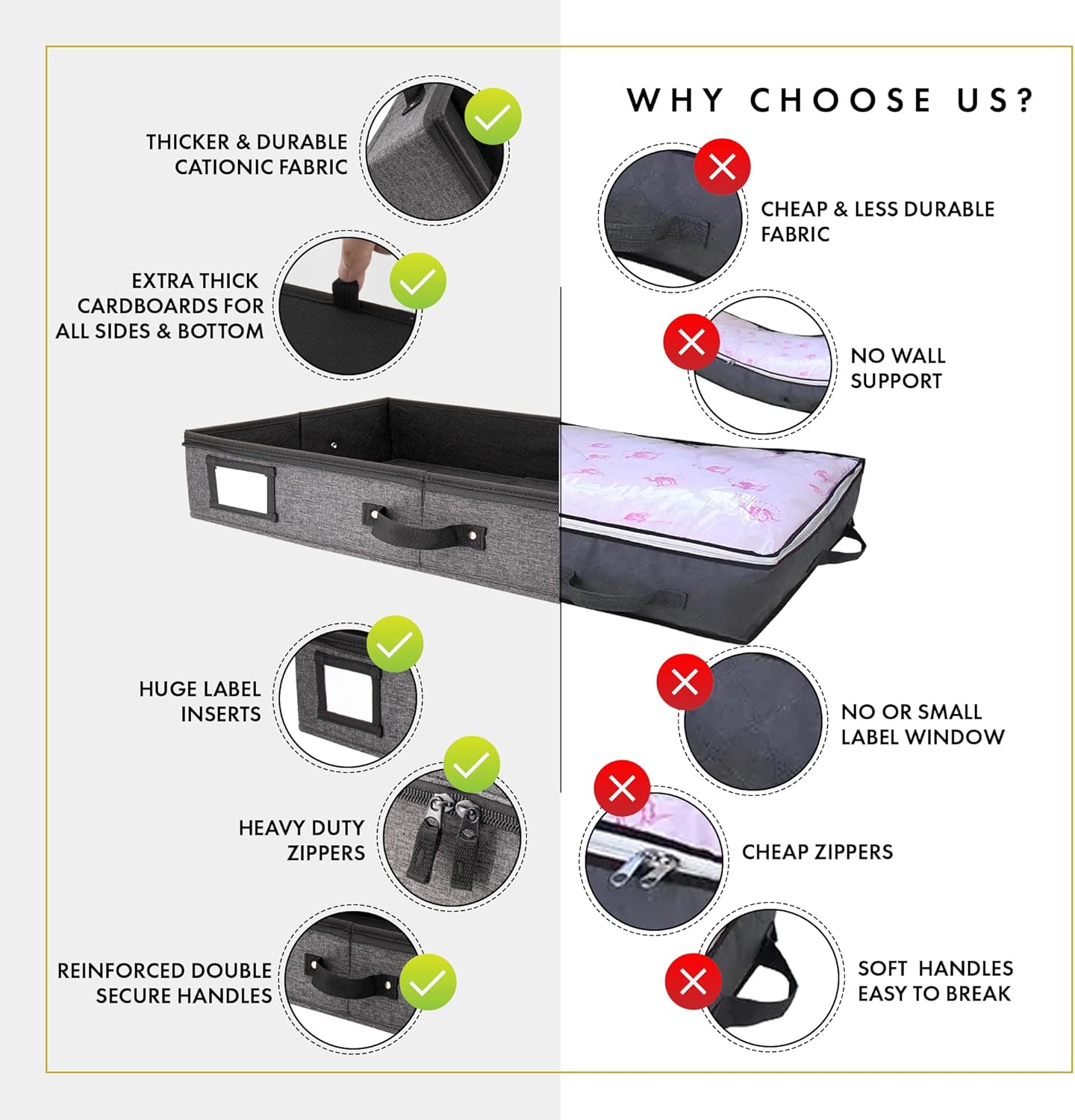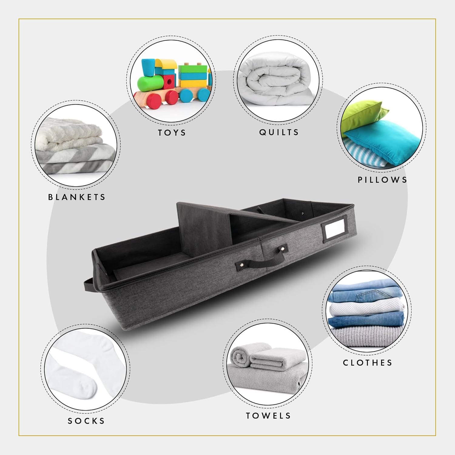 - 𝐒𝐩𝐚𝐜𝐞 𝐒𝐚𝐯𝐞𝐫 𝐎𝐫𝐠𝐚𝐧𝐢𝐳𝐞𝐫: Prioritizing superior under bed storage for clothes not only helps you declutter, but also utilize hidden spaces like under the bed and under the couch. Our stylish storage for under beds is also ideal as a shoe storage organizer, low profile under crib storage, blanket storage, under bed ornament storage box, low profile storage box, and storage for other items such as yarns, sweaters, holiday decorations, prized collections, & more!