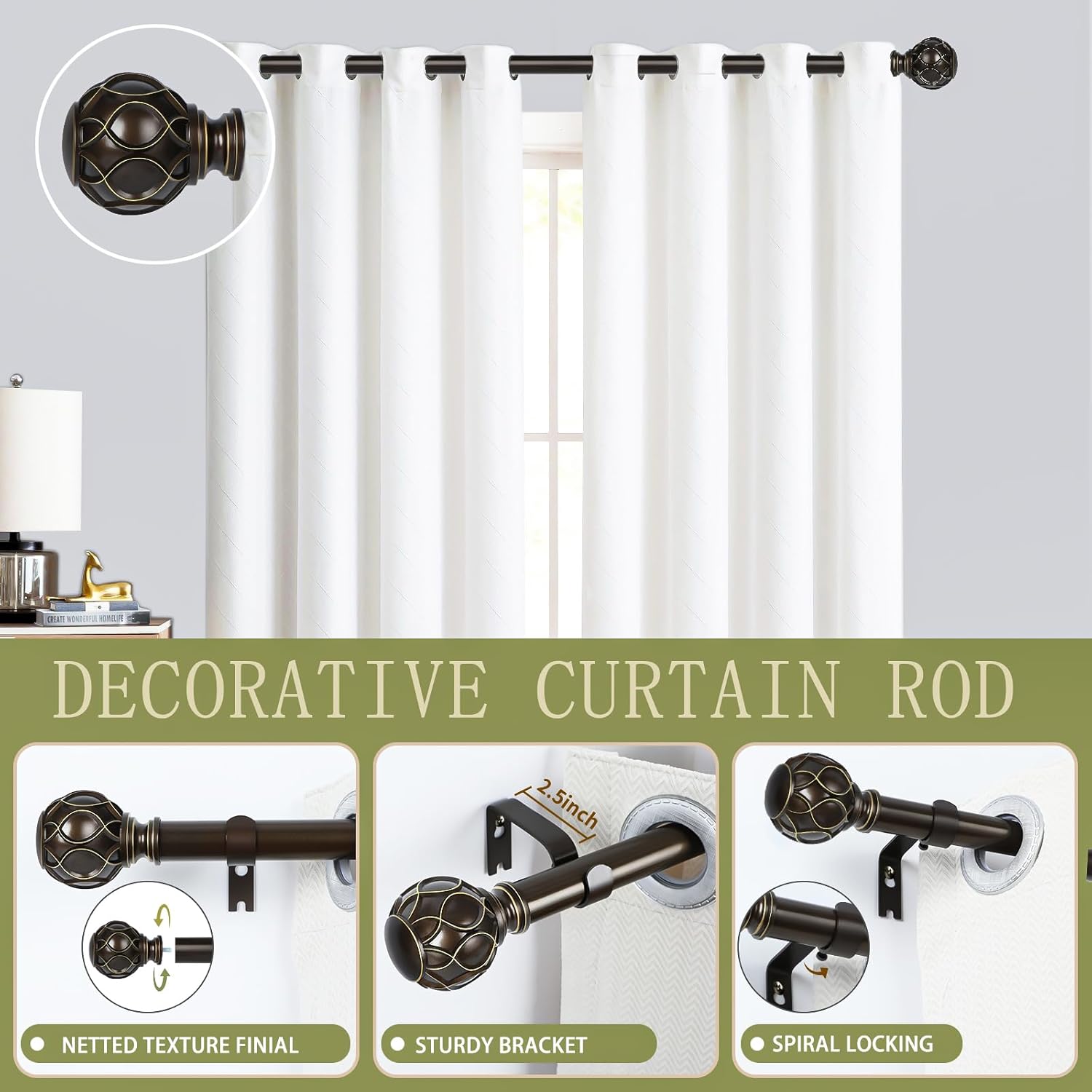 Bronze Farmhouse Curtain Rods for Windows:66-120 Inch Heavy Duty Adjustable Curtain Rod for Bedroom Living Room,Boho Decorative Rustic Drapery Rods with Vintage Coastal Finial,Antique Bronze