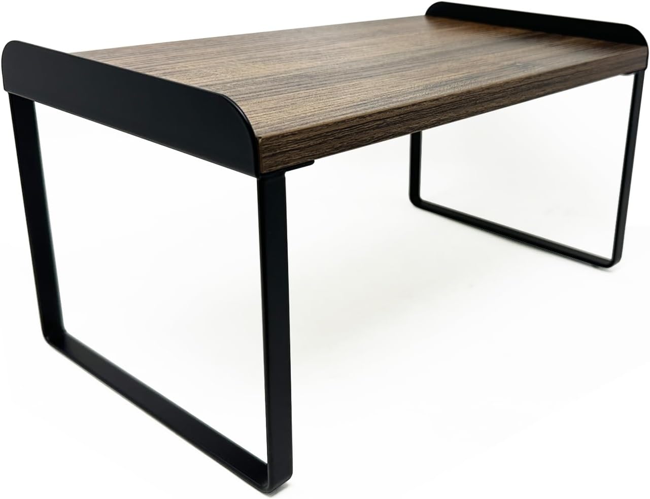 Mitus Shelf Organizer and Storage, Tiered Wood Cabinet Rack for The Kitchen Counter, Bathroom Counter, Pantry Cupboard, Office Desk Bookshelf, 12" Wide Walnut Brown and Black