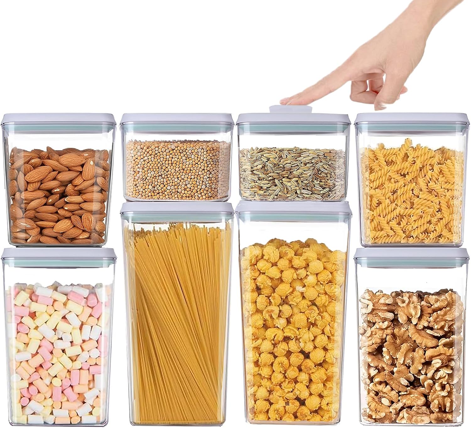 Pop Containers with Lids - Stackable Airtight Food Storage, Kitchen Pantry Storage Containers for Snacks Candy Salt Herbs Spices BPA-Free (8PCS (1.2 + 2.0 + 2.7 + 3.3 Qt) * 2)