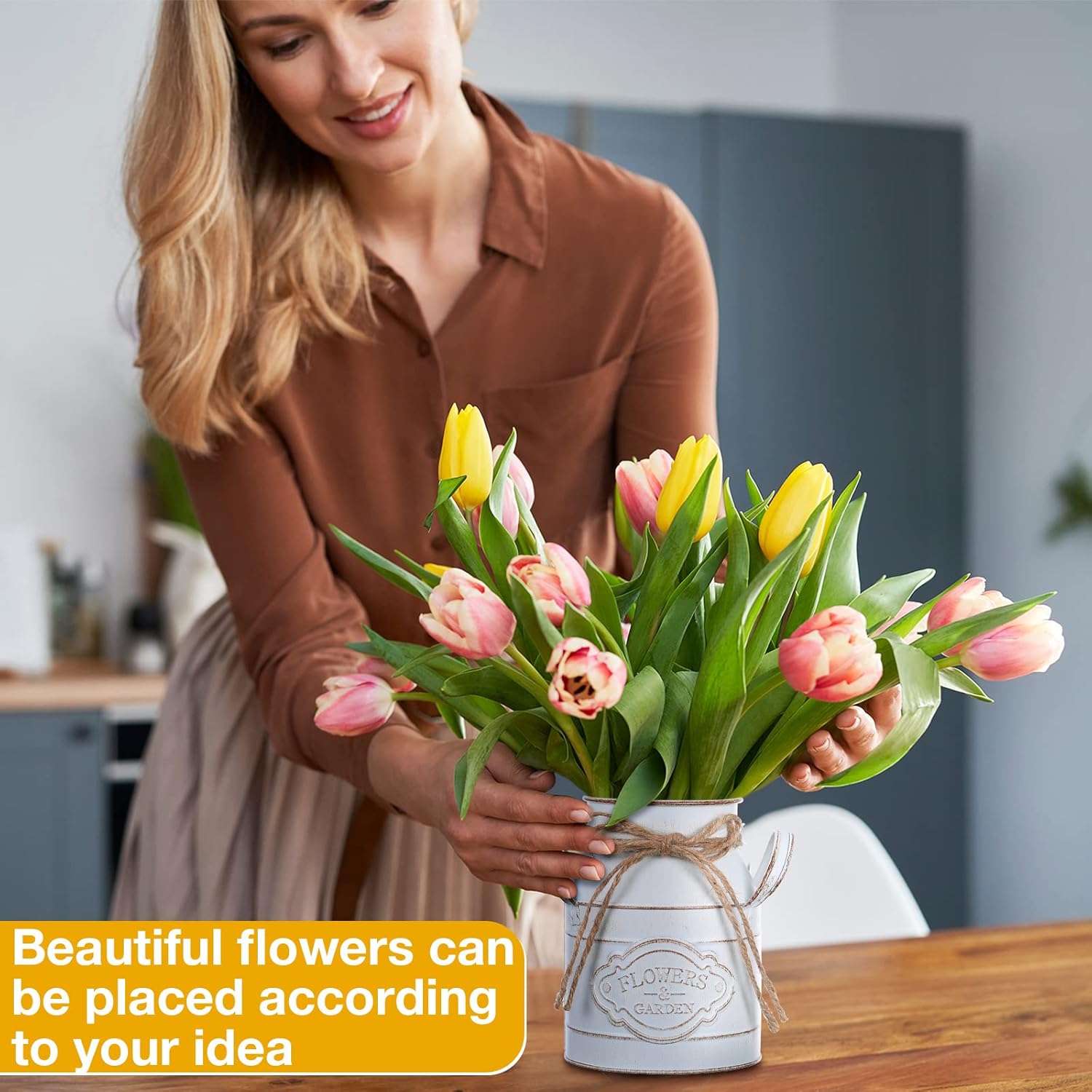 - Quality Material: the milk can vase is crafted from galvanized metal, ensuring durability and robustness; Its composition assures you of a product that's not just visually appealing, but also efficiently resistant to easy wear and tear