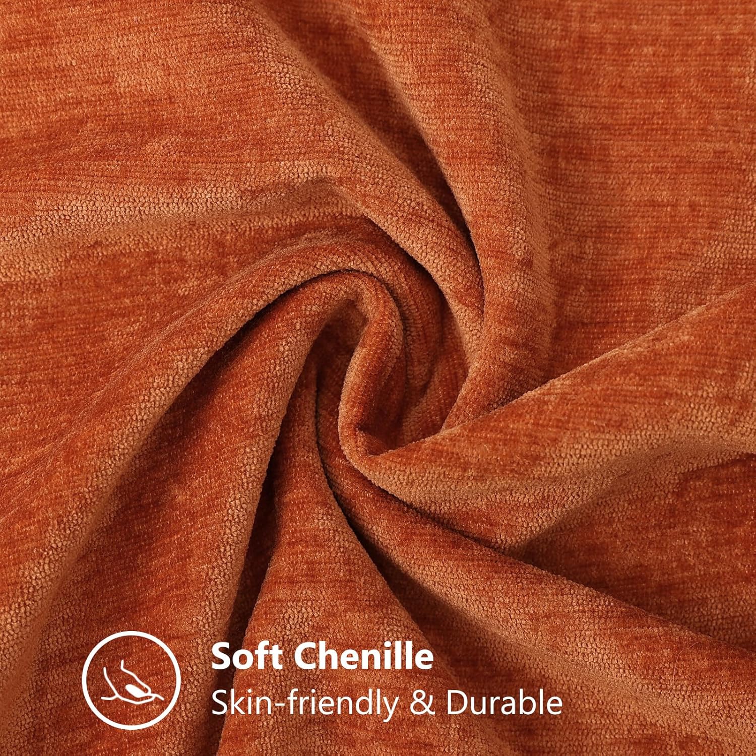 decorUhome Fall Chenille Soft Throw Pillow Covers 22x22 Set of 2, Farmhouse Velvet Neutral Decorative Euro Pillow Covers with Stitched Edge for Couch Sofa Bed Home Decor, Rust