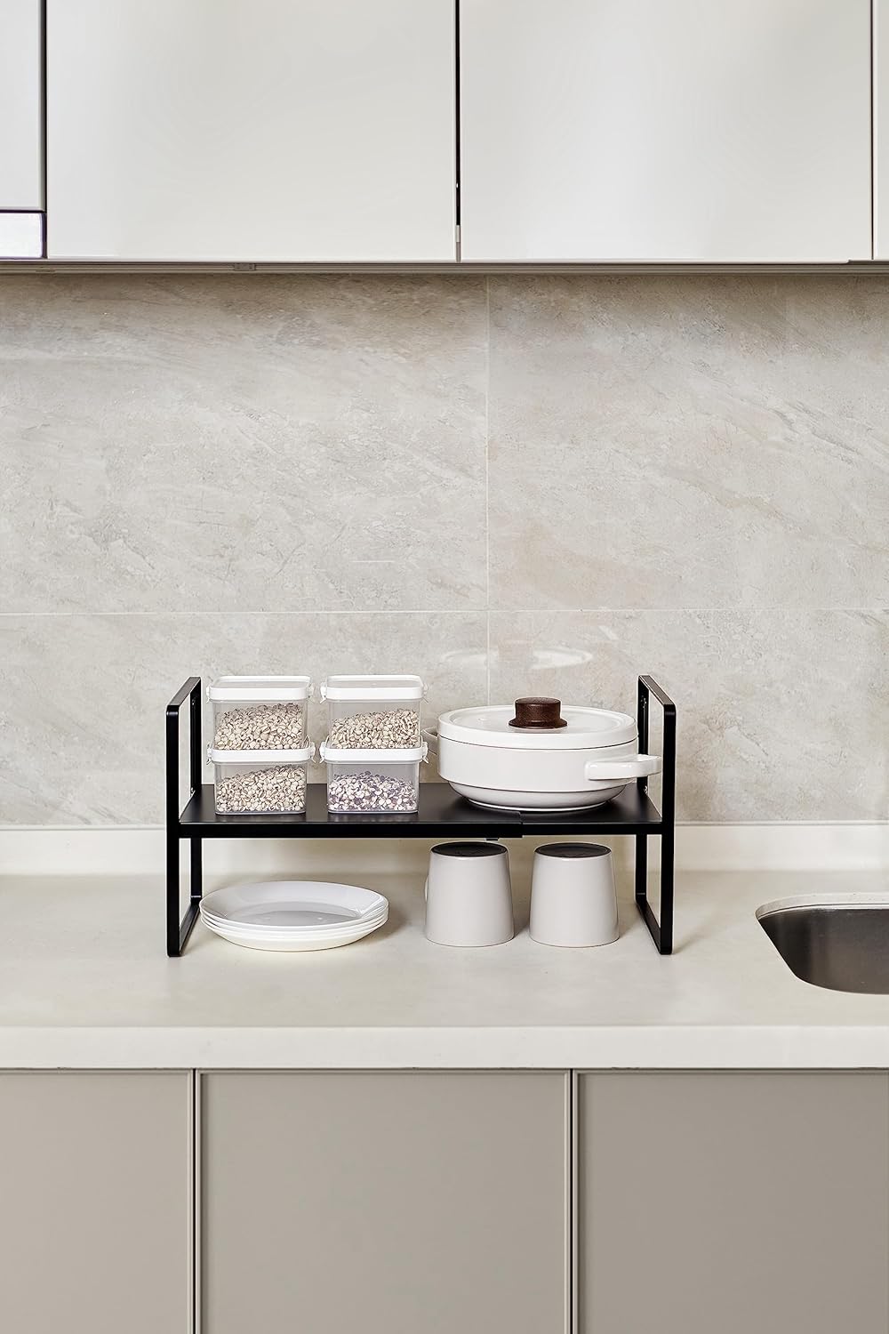 Nxconsu Cabinet Shelf Expandable Height Adjustable Organizer Riser for Kitchen Cabinet Pantry Cupboard Under Sink Countertop Organization Storage Space Saver Stackable Heavy Duty Metal Black XL