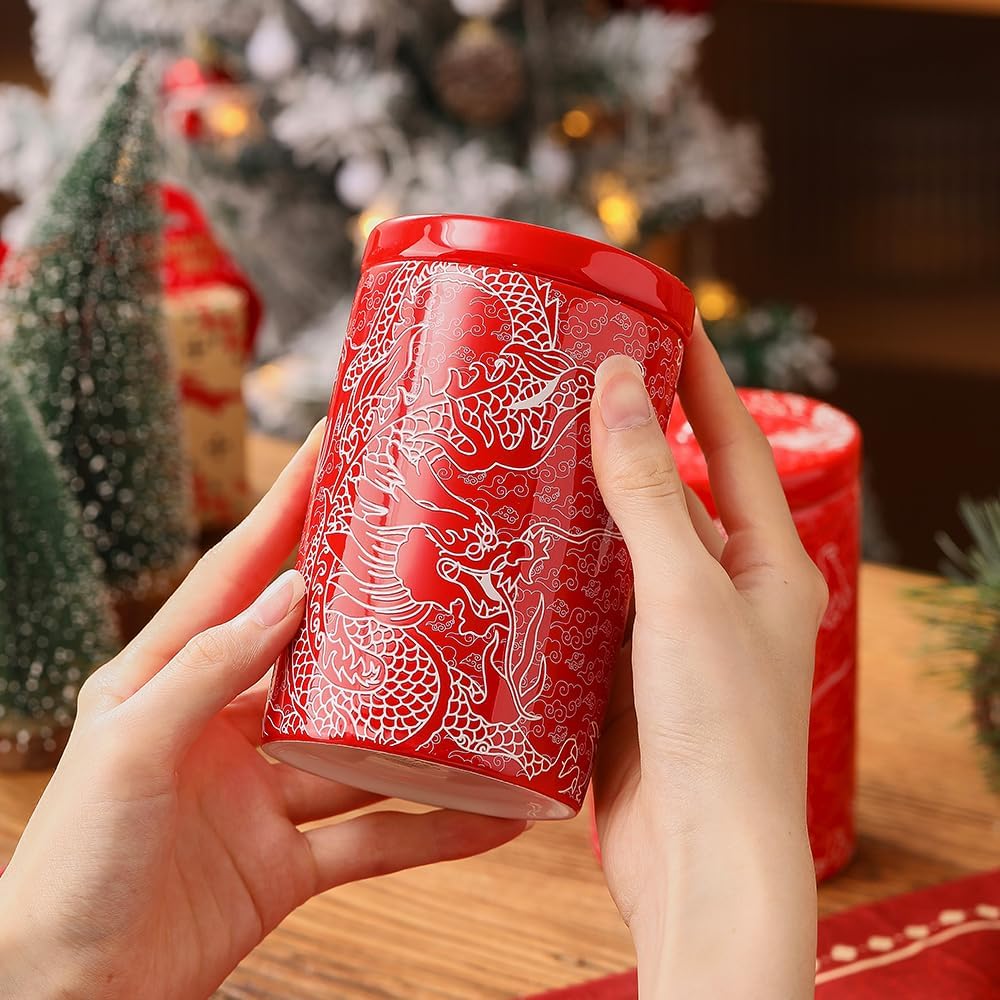 Porlien Chinese Dragon Porcelain 15-ounce Canisters Set of 2, Food Storage Containers with Lid for Coffee Beans, Tea, Condiments & Nuts