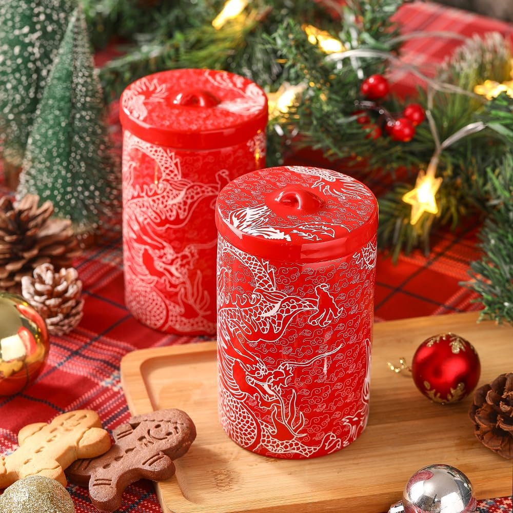 - FESTIVAL STYLE:Red with white color with vivid pattern gives a lively and refreshing feeling that never goes out of date. The porcelain canister set is a gorgeous decor to your kitchen and home.