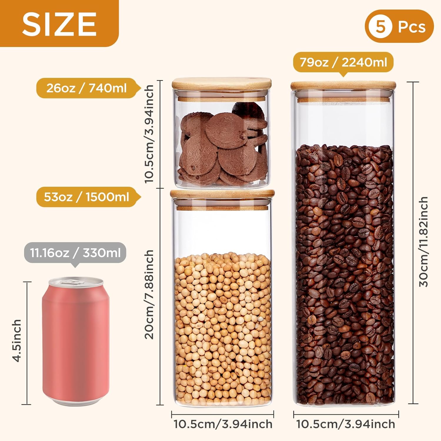 - 【Thick & Durable Glass Material】Our glass food storage jars are made from high-quality and thick borosilicate glass, which is durable and resistant to scratches. The sturdy glass construction ensures long-lasting use and keeps your food safe and fresh.