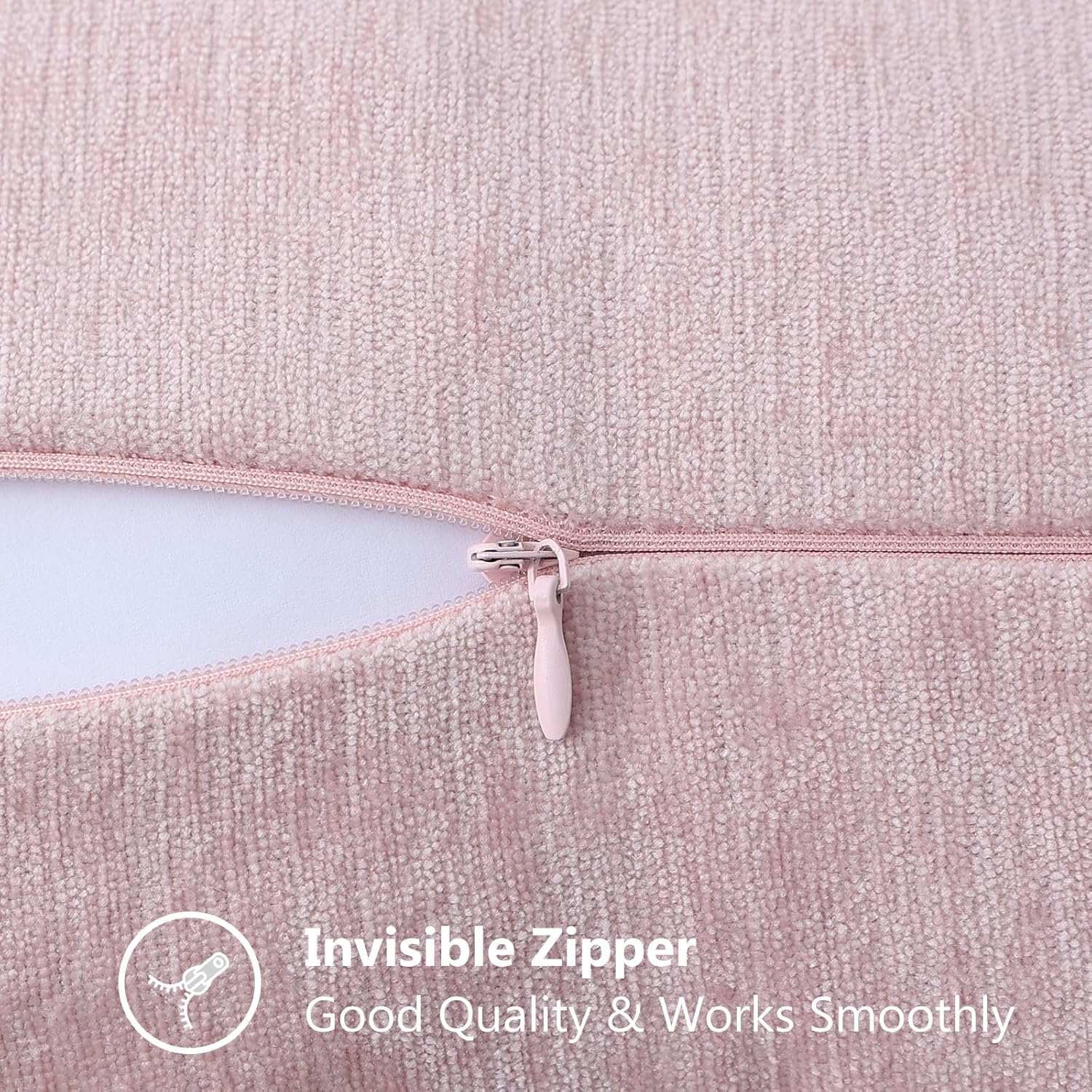 decorUhome Chenille Soft Throw Pillow Covers 18x18 Set of 2, Farmhouse Velvet Neutral Decorative Euro Pillow Covers with Stitched Edge for Couch Sofa Bed Home Decor, Blush Pink
