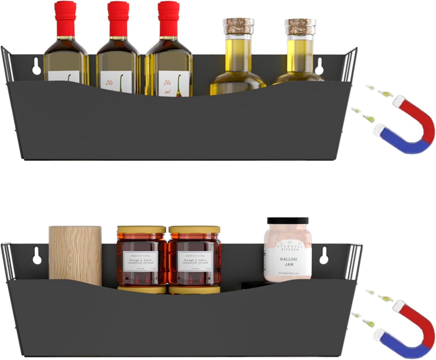 Magnetic Kitchen Organizer for Refrigerator Spice Rack Organizer Metal Magnet Shelf For Waching Machine Strong Magnetic Fridge Shelf for Microwave Kitchen Pantry Organizer No Drilling Installation