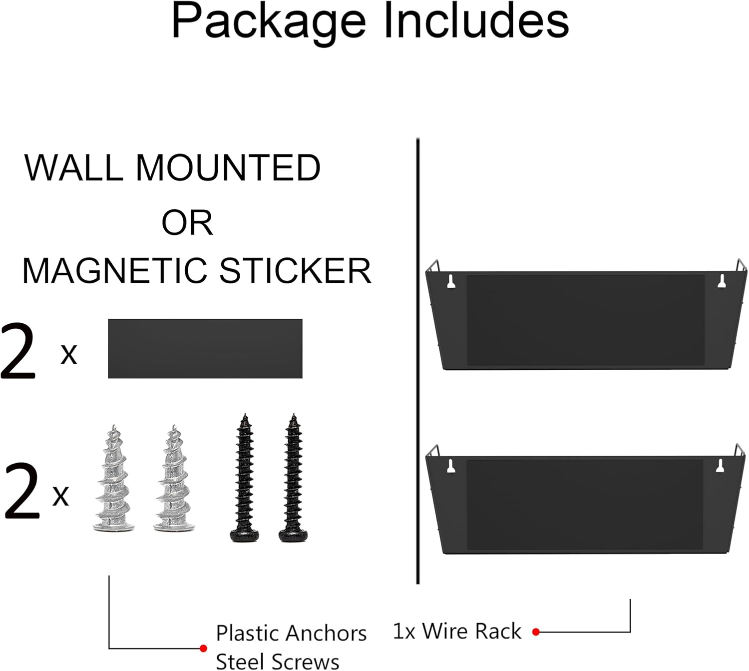 - Sturdy Quality: Storage basket are welded well with Crafted from high-quality materials,super strong magnet sticker on the back,meanwhile, the good wall mounted screws to fix her on the wall optionally , good surface with crafted painting surface durable for many years.1 shelf supports up to 12 normally spice jar,bearing up to 12 lbs.