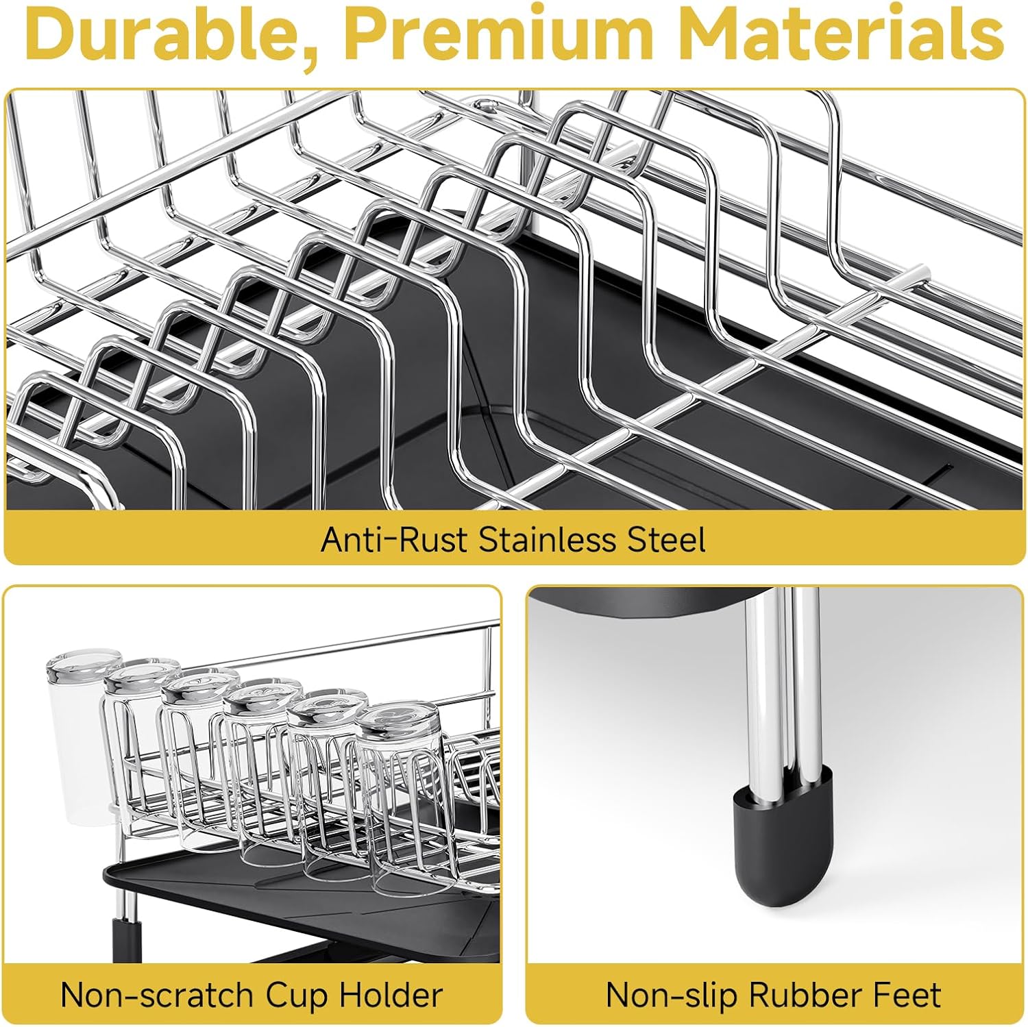 - 【High Quality】The dish drainer is made of high-quality stainless steel and will not be deformed. Rust-proof and durable. The water channel and drip tray are made of PP environmental protection material