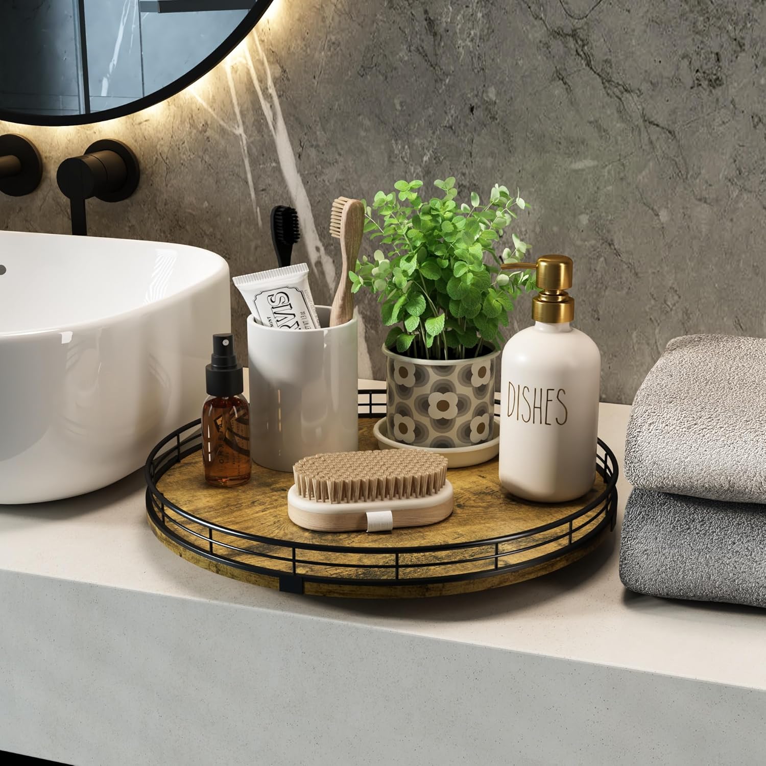 - Exquisite Texture- A turntable to meet your many home needs. Place it in your cabinet to easily store and access food, condiments, cans, medicines and more. As a coffee table tray, perfect for displaying napkin holders, vases, candles. Use it as a bathroom vanity tray to store lotions, perfumes, cosmetics, keep your life organized!