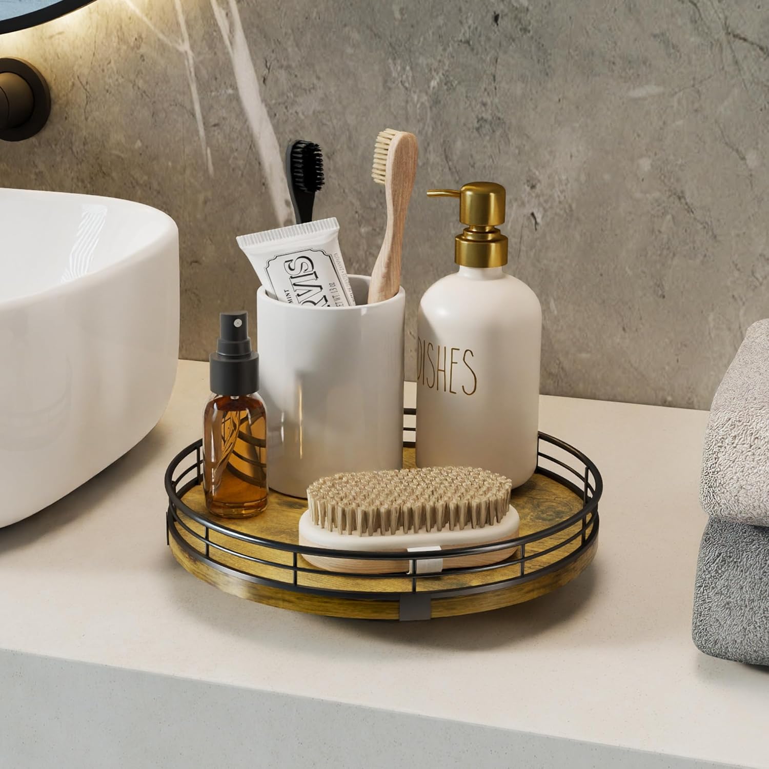 - Exquisite Texture- A turntable to meet your many home needs. Place it in your cabinet to easily store and access food, condiments, cans, medicines and more. As a coffee table tray, perfect for displaying napkin holders, vases, candles. Use it as a bathroom vanity tray to store lotions, perfumes, cosmetics, keep your life organized!