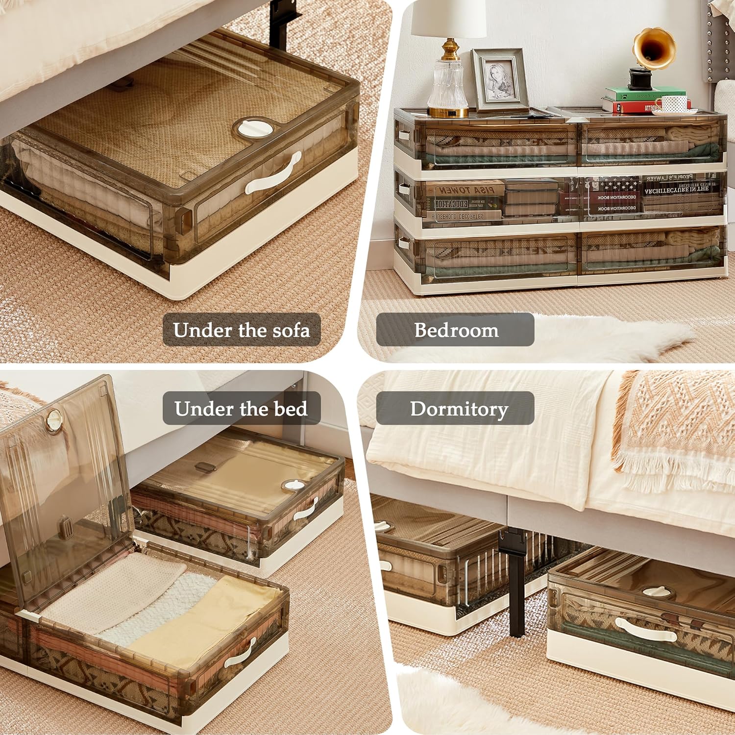 - 【Foldable Storage Boxes】Our storage bins with lids under bed are easy to assemble – simply unfold the four sides, connect them, and add the lid and wheels. When not in use, you can fold them and place under bed storage containers plastic in a corner or under the sofa, saving a significant amount of space.