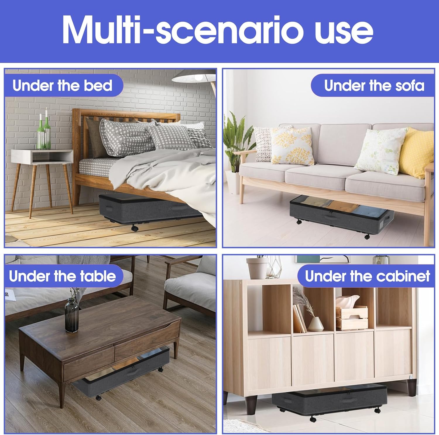 - 【Versatile storage containers】Designed to save space, helping to store seasonal clothing, bedding, shoes, books, toys decorations under bed, tall shelves, dresser, couch, desk, crib or other small nooks.The under bed storage containers perfect for families and college dorms that need extra storage space.