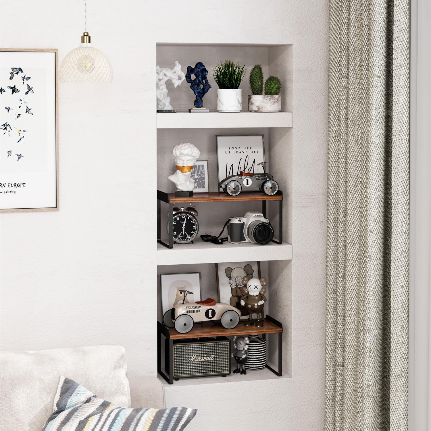 Mitus Shelf Organizer and Storage, Tiered Wood Cabinet Rack for The Kitchen Counter, Bathroom Counter, Pantry Cupboard, Office Desk Bookshelf, 12" Wide Walnut Brown and Black (Large)